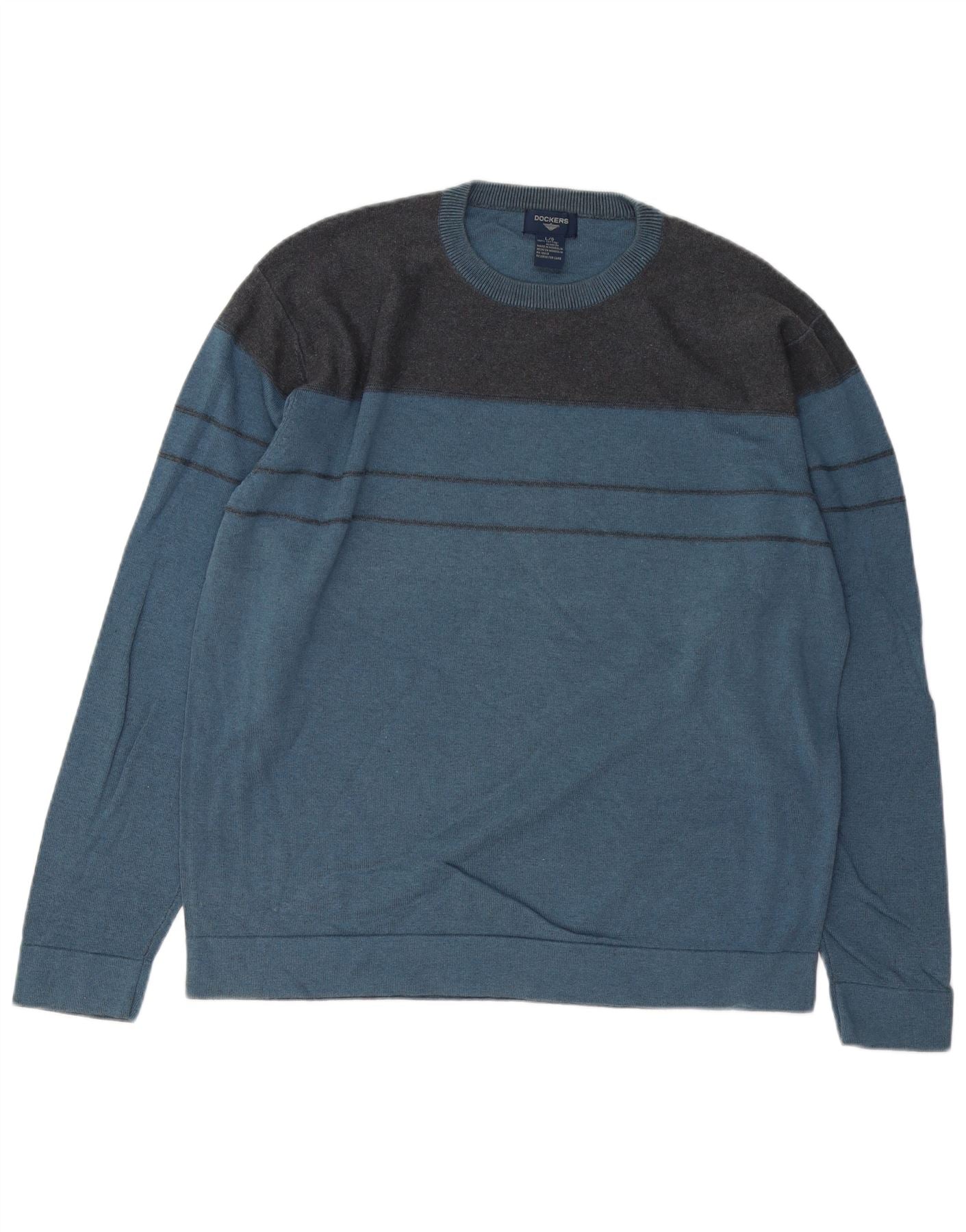 Мужской джемпер с круглым вырезом DOCKERS, большой синий хлопковый свитер с цветными блоками