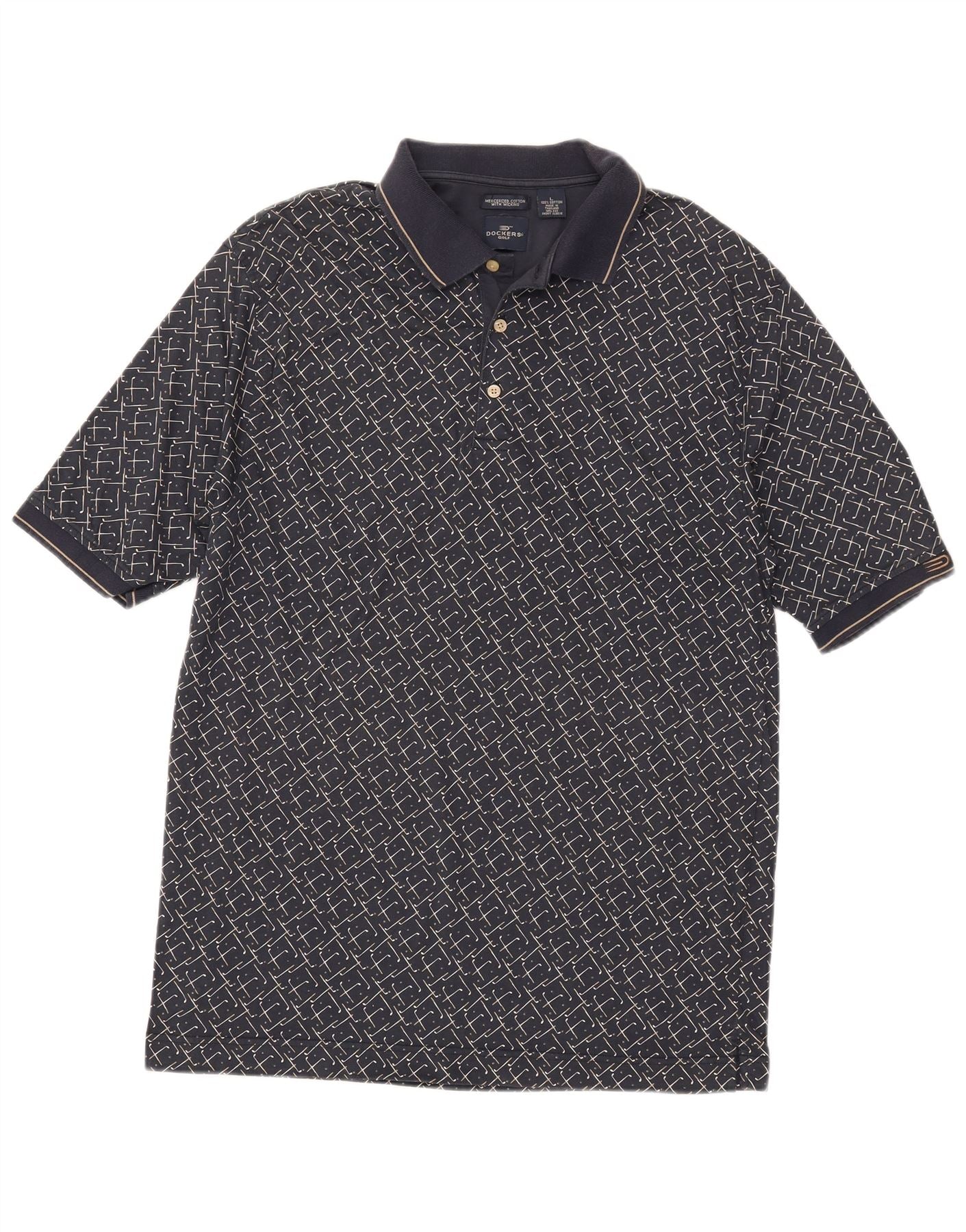 Мужская рубашка-поло DOCKERS, большая темно-синяя хлопковая рубашка с геометрическим рисунком