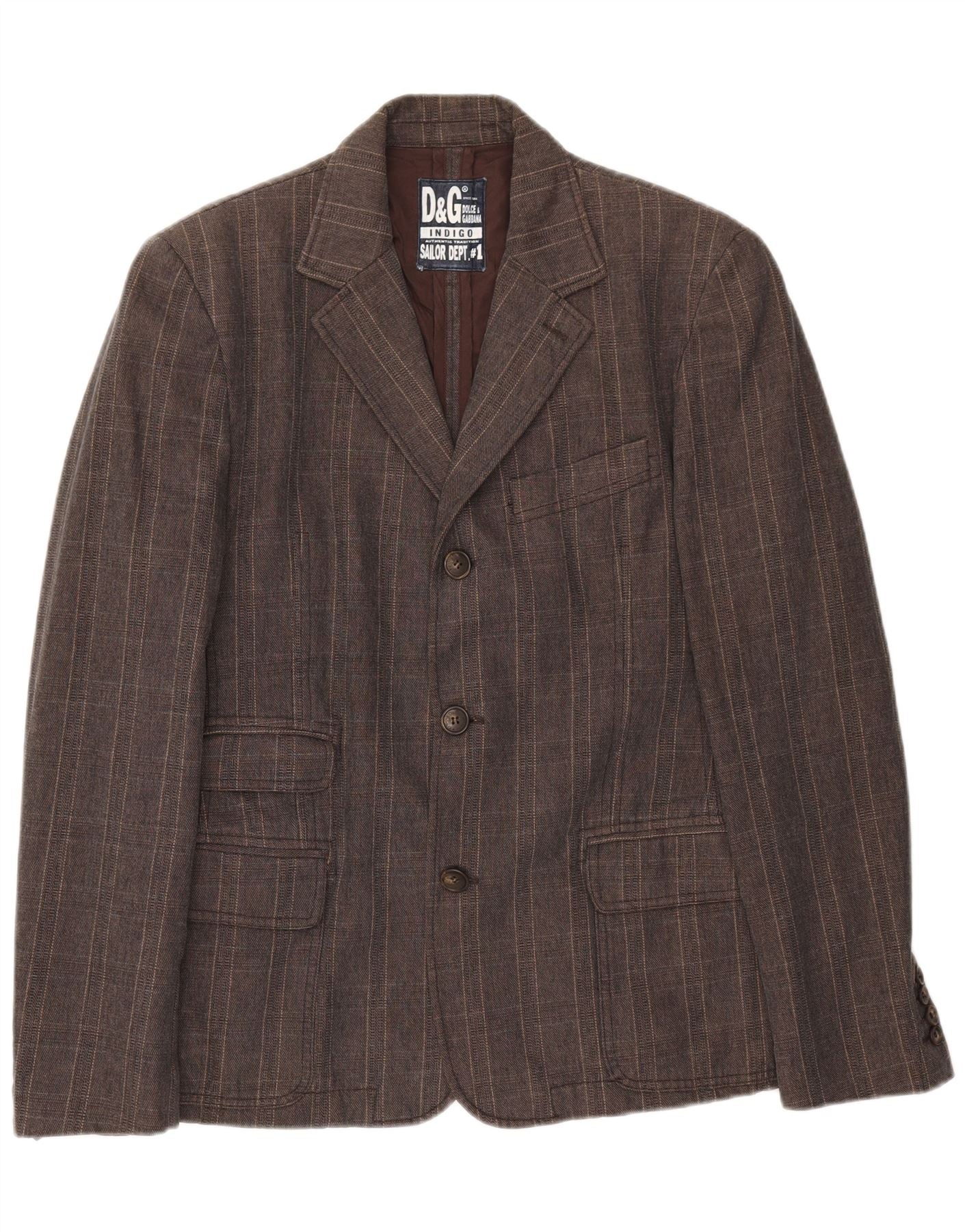 DOLCE & GABBANA Mens 3 Button Blazer Jacket UK 38 Medium Grey Check Cotton
