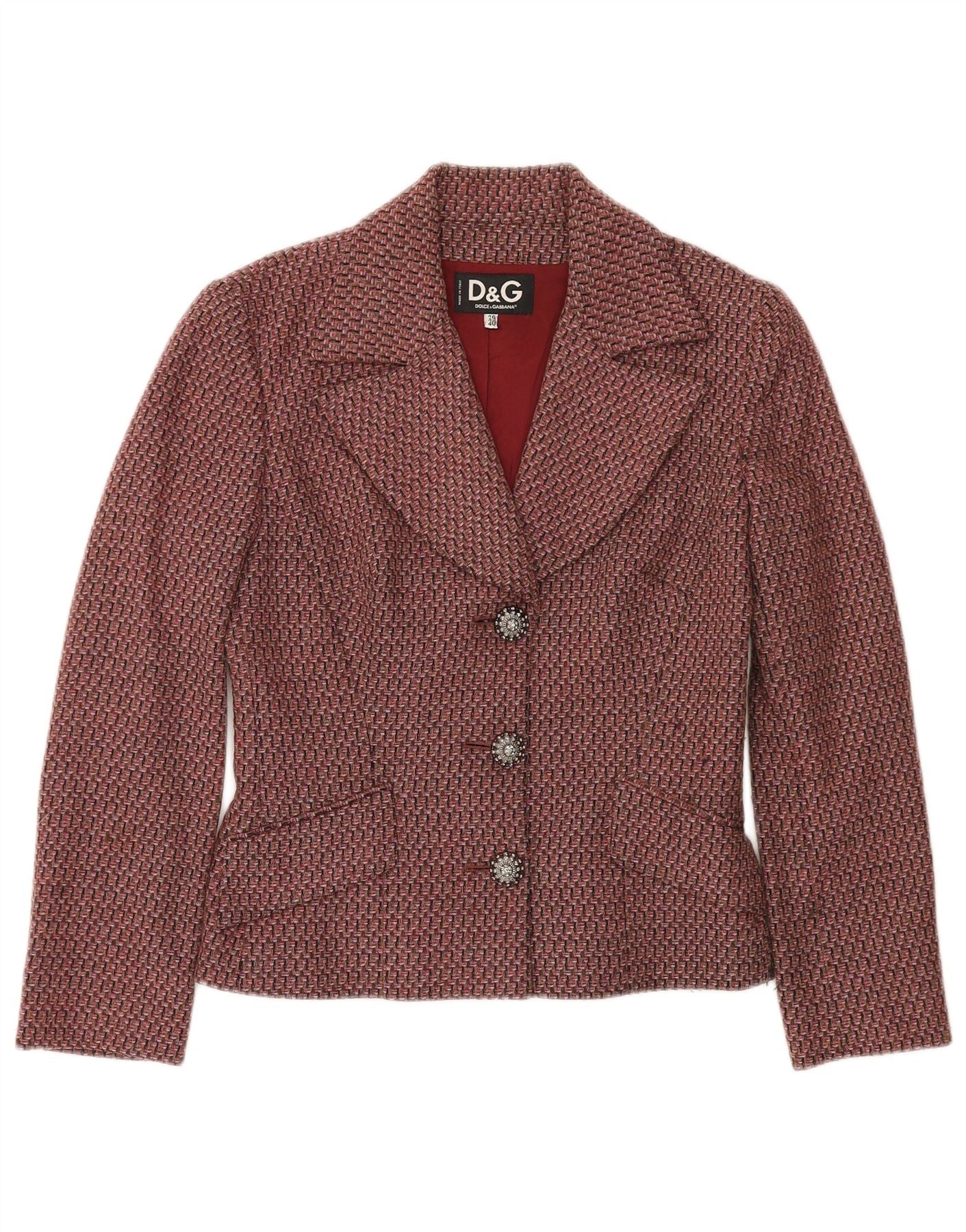 DOLCE & GABBANA Womens 3 Button Blazer Jacket IT 40 Small Purple Geometric