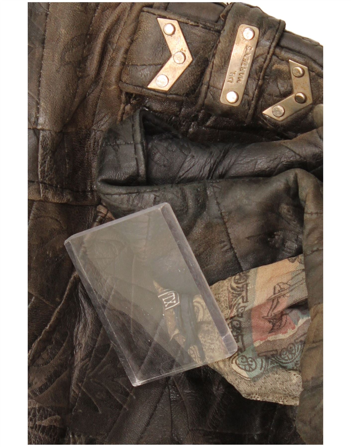 DR MARTENS Womens Crop Leather Biker Jacket UK 18 XL Brown Patchwork