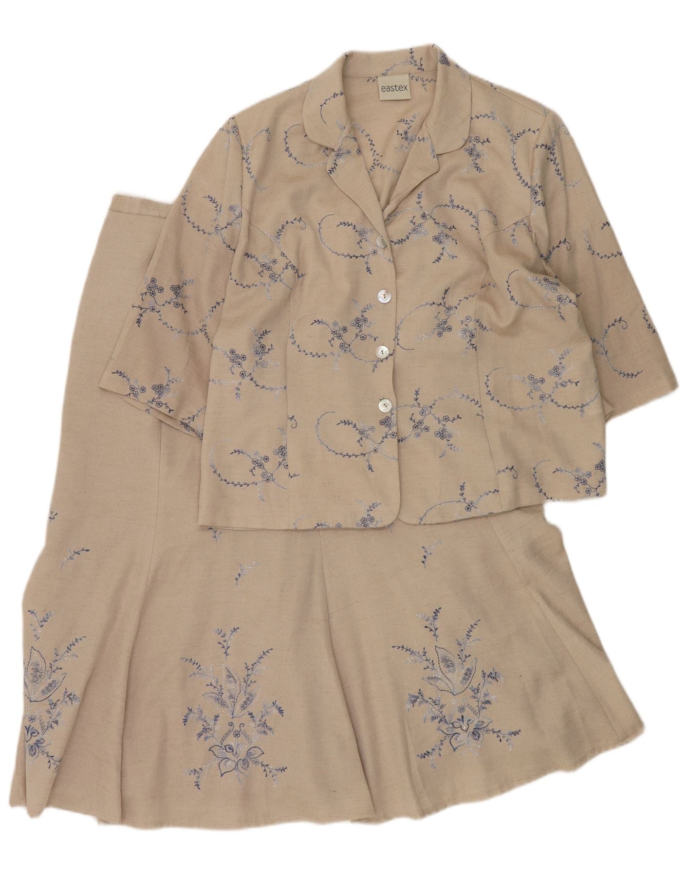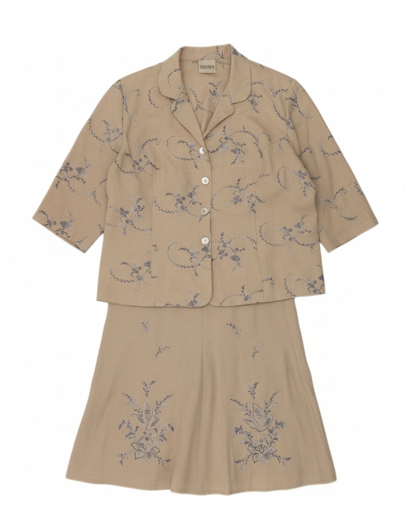 EASTEX Womens 3/4 Sleeve 2 Piece Skirt Set UK 16 Large W36 Beige Floral