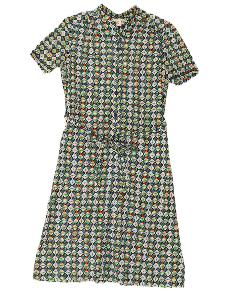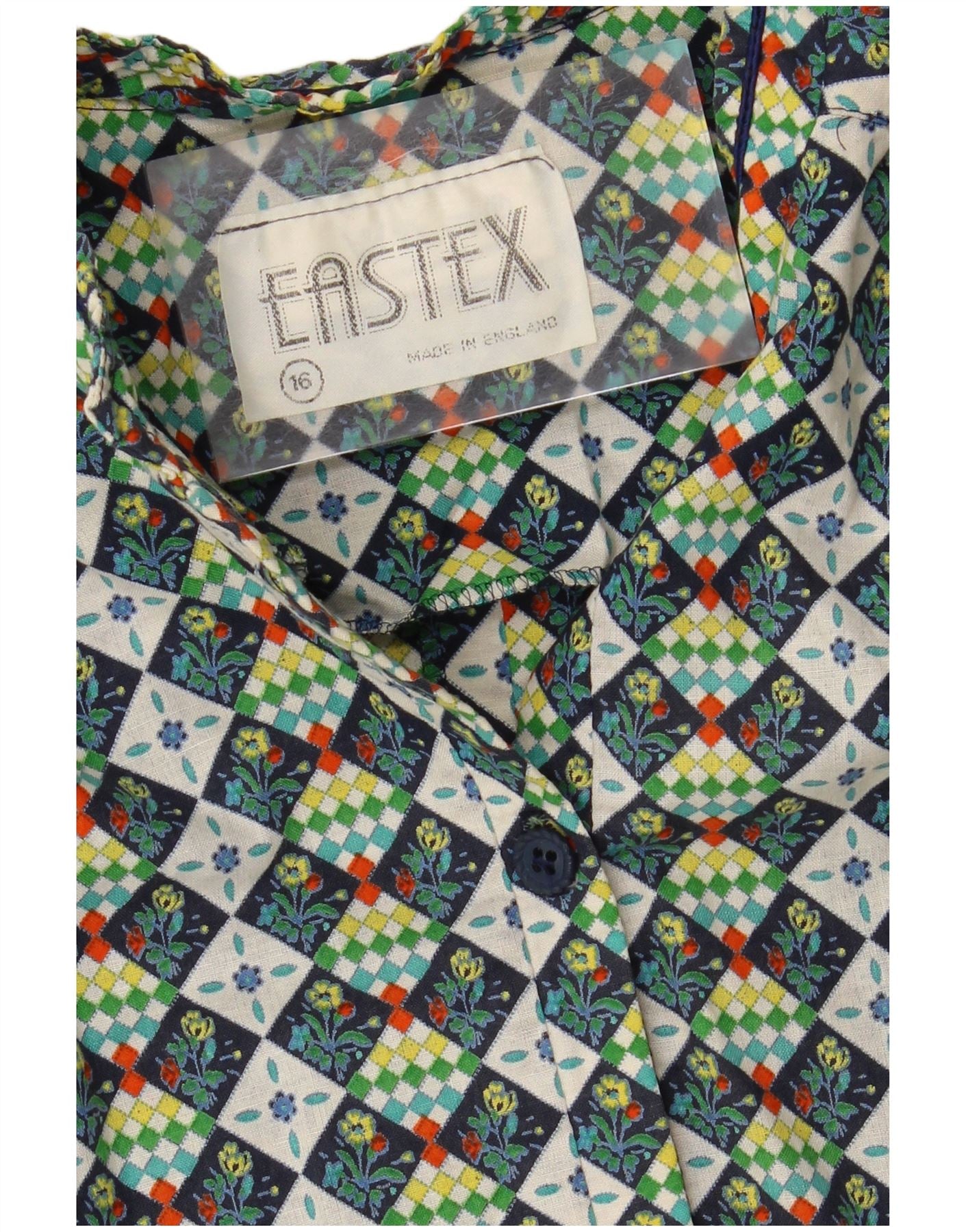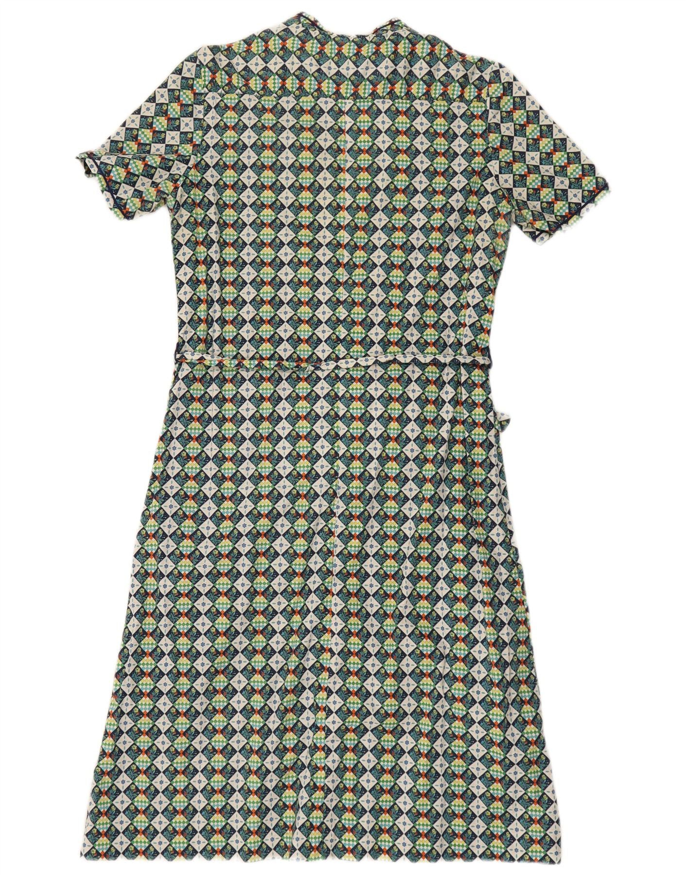 EASTEX Womens A-Line Dress UK 16 Large Green Geometric Cotton
