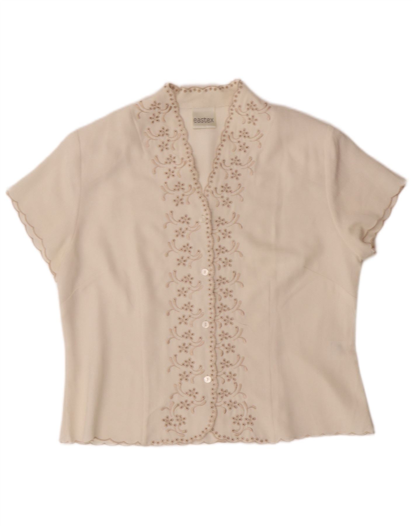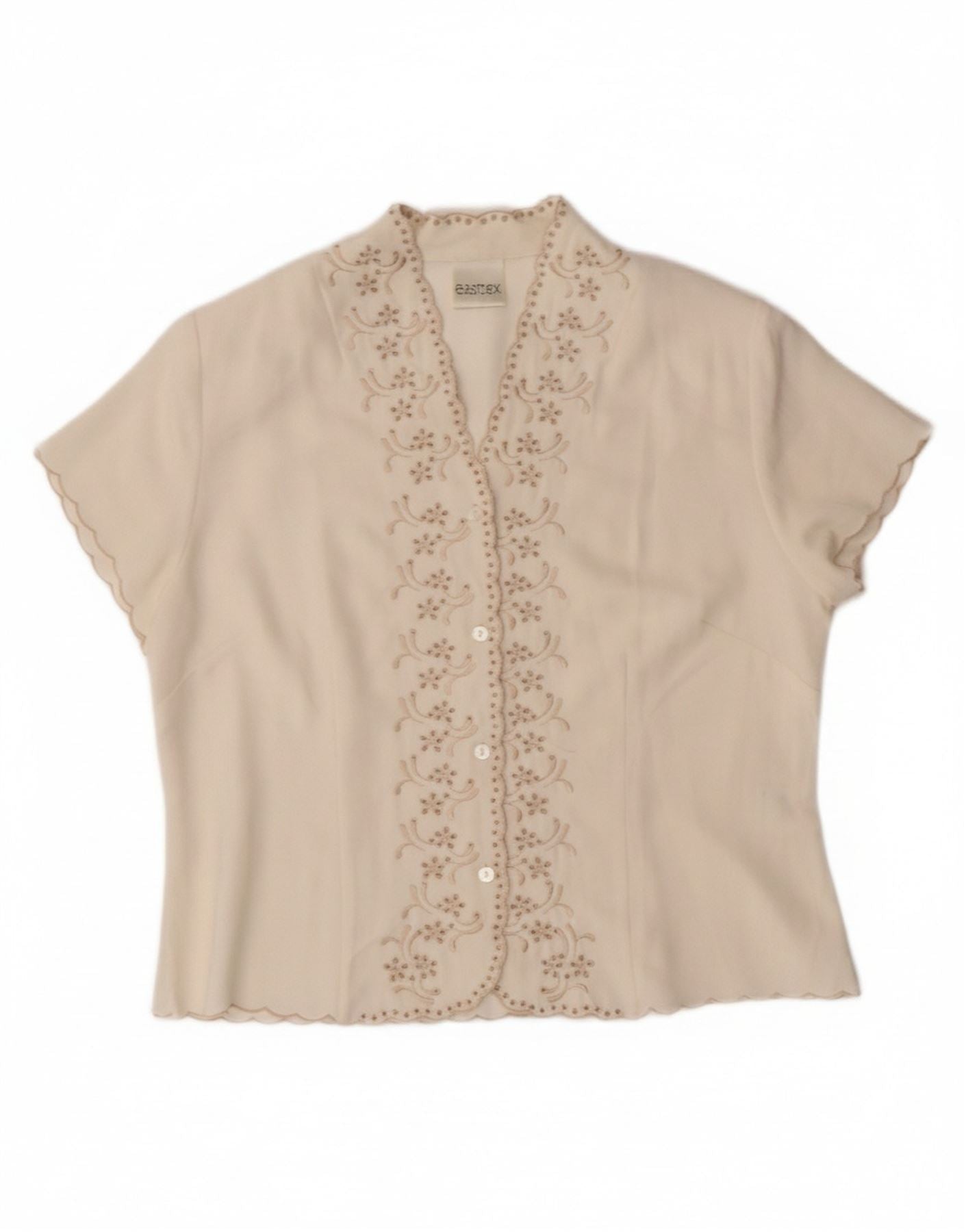 EASTEX Womens Short Sleeve Shirt Blouse UK 14 Medium Off White Floral