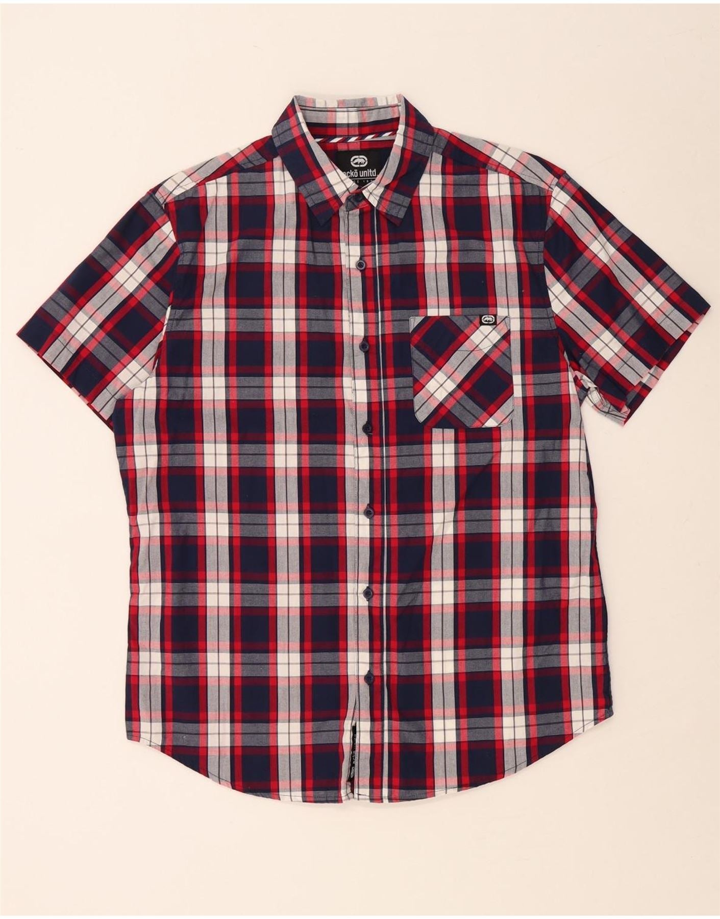 ECKO UNLTD Mens Short Sleeve Shirt Medium Navy Blue Check Cotton
