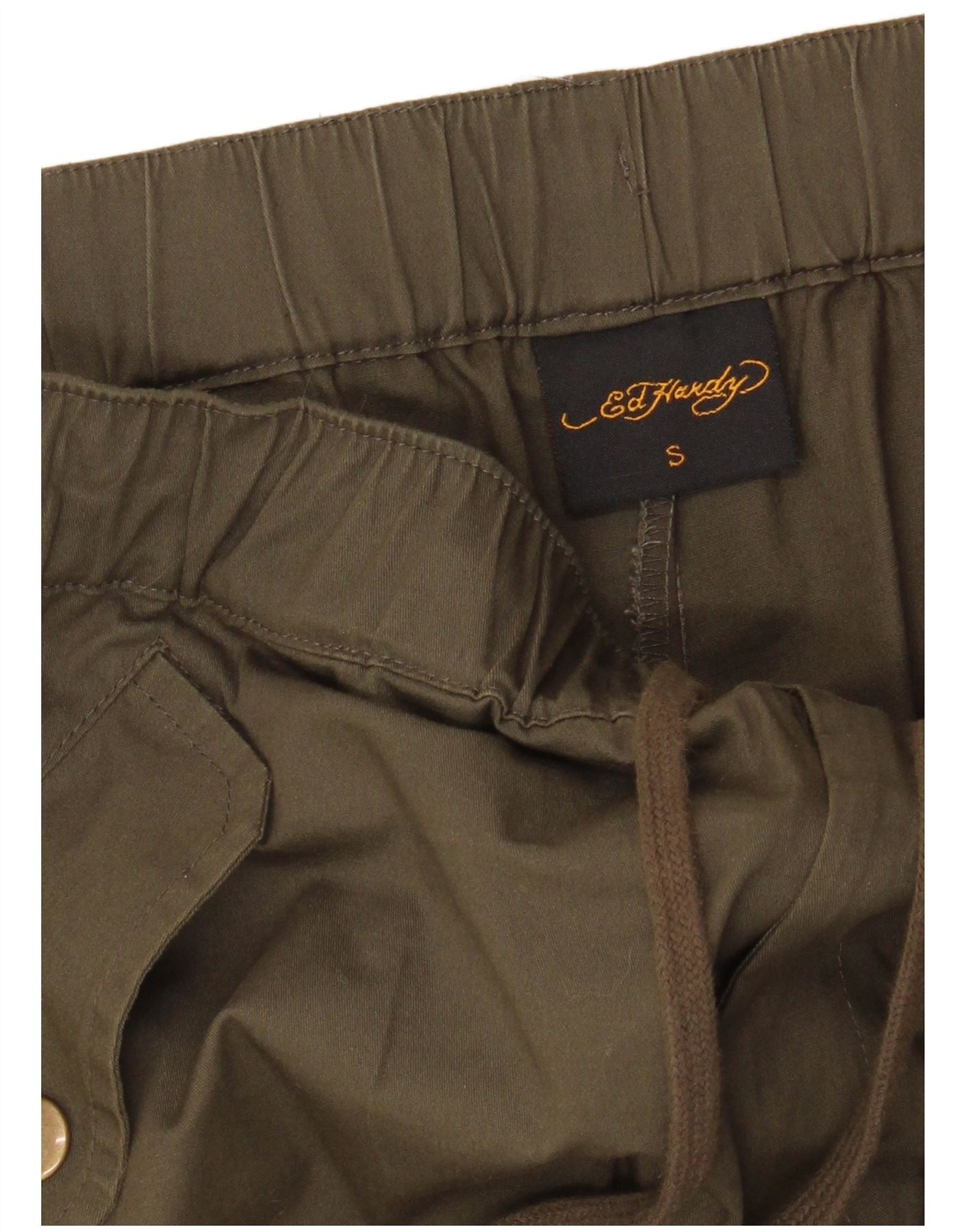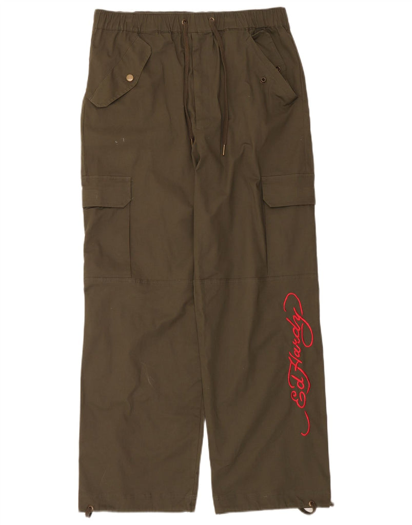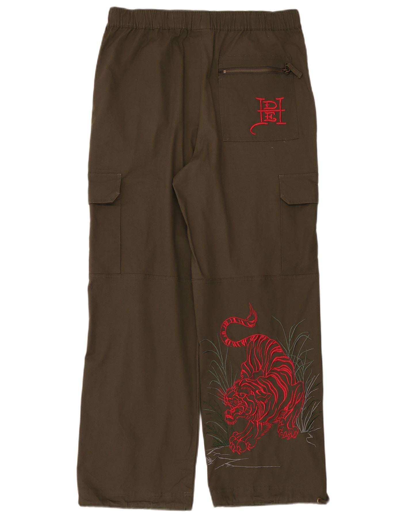 ED HARDY Mens Graphic Straight Cargo Trousers Small W32 L29 Khaki Cotton