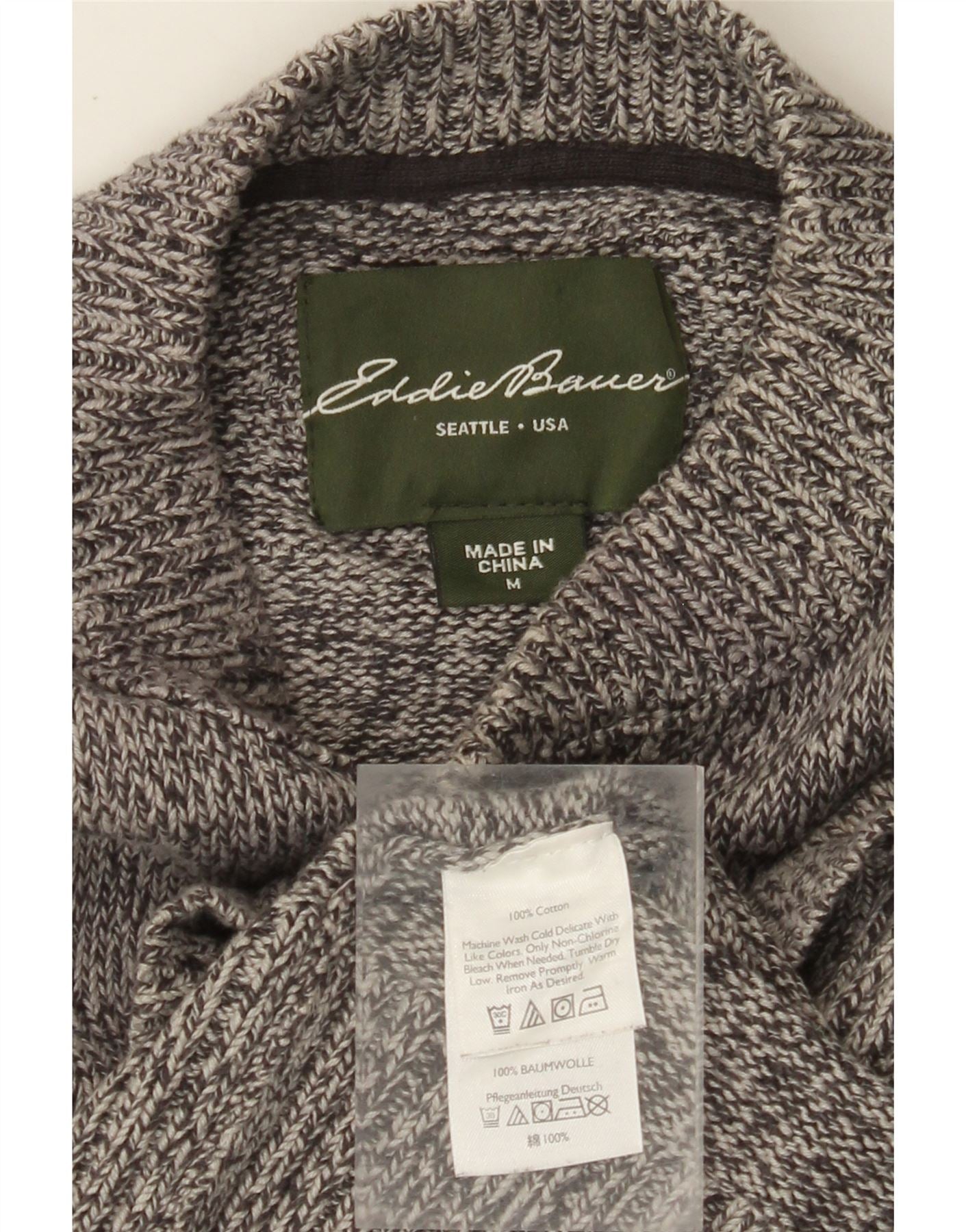 Мужской джемпер на пуговицах EDDIE BAUER, хлопковый свитер среднего серого цвета с крапинками