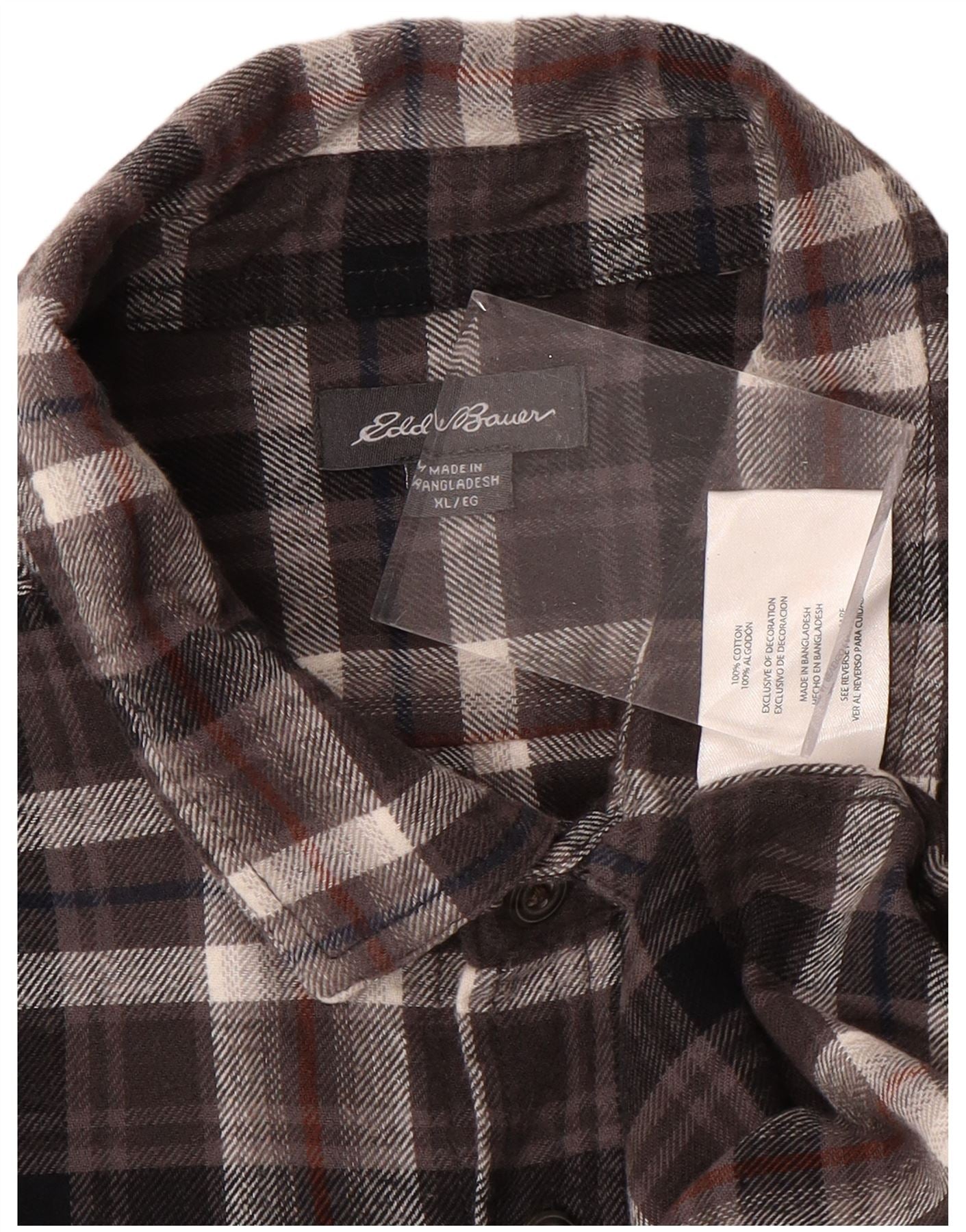 EDDIE BAUER Мужская фланелевая рубашка в клетку XL, коричневая клетка, хлопок