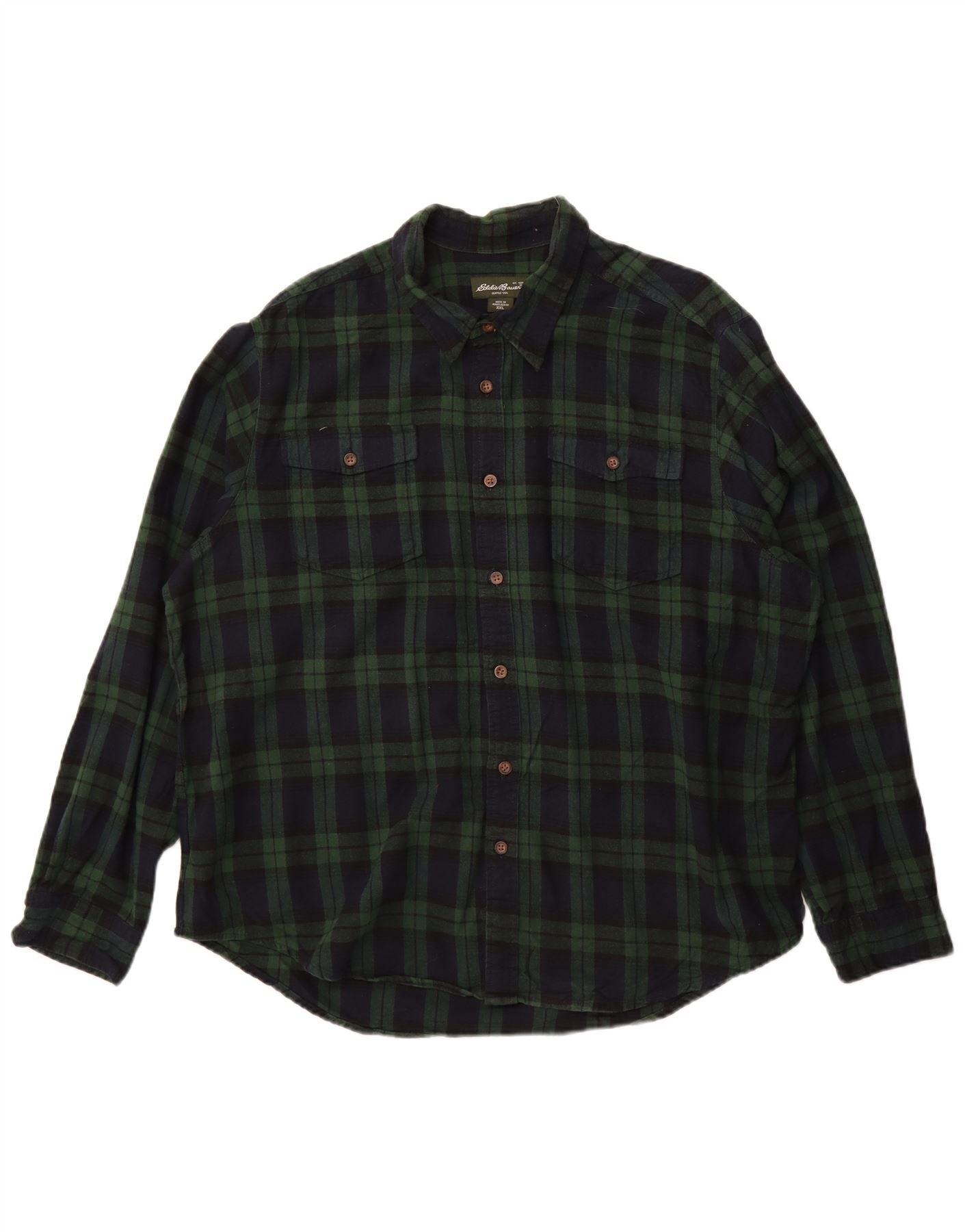 Мужская фланелевая рубашка Eddie Bauer 2XL, зеленая клетка, хлопок