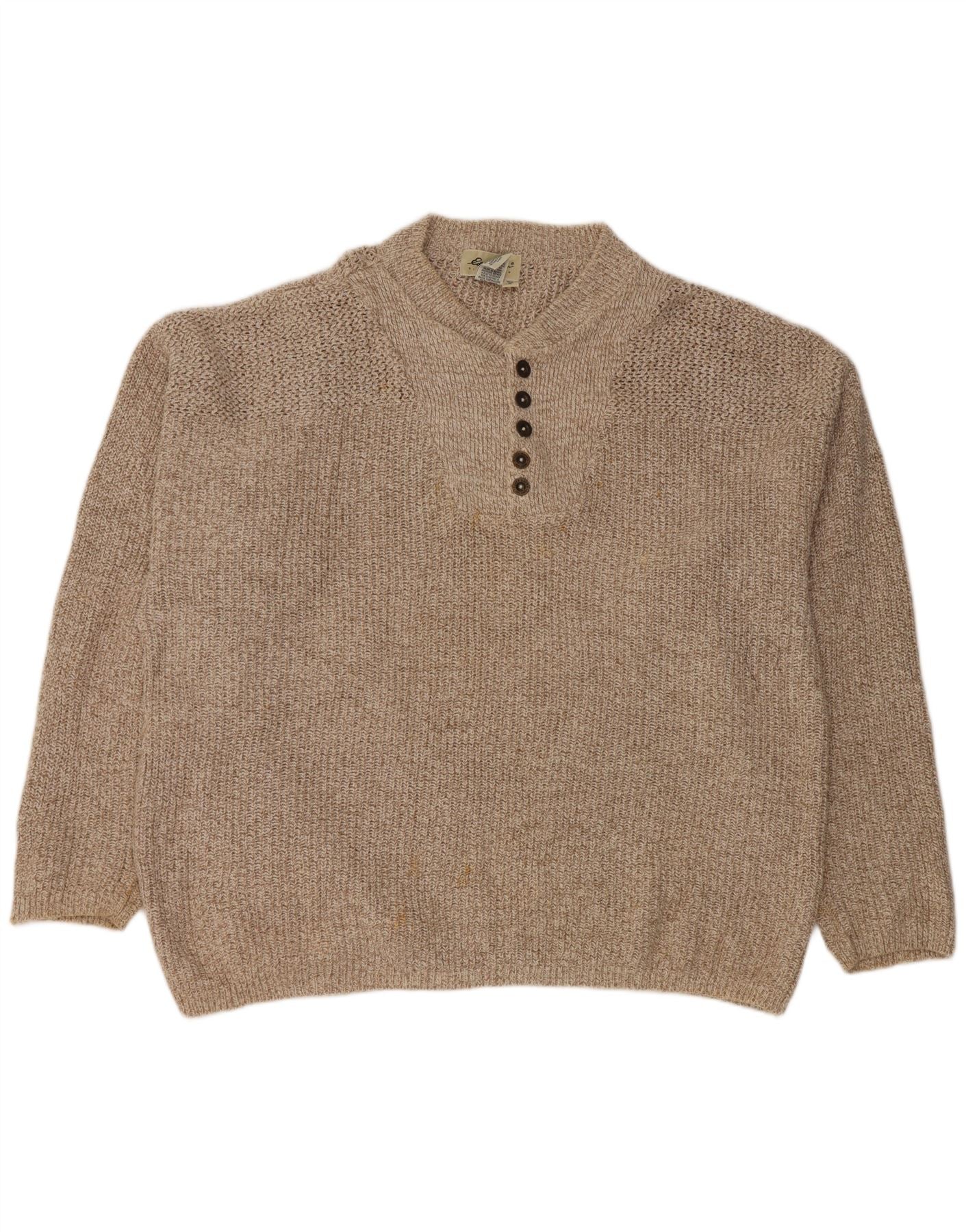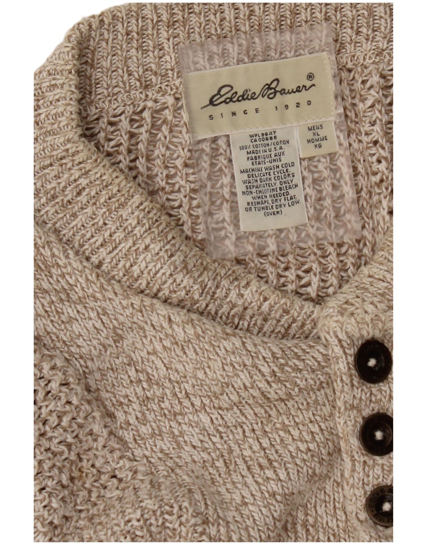 EDDIE BAUER Мужской свободный джемпер с воротником на пуговицах, XL, бежевый в крапинку