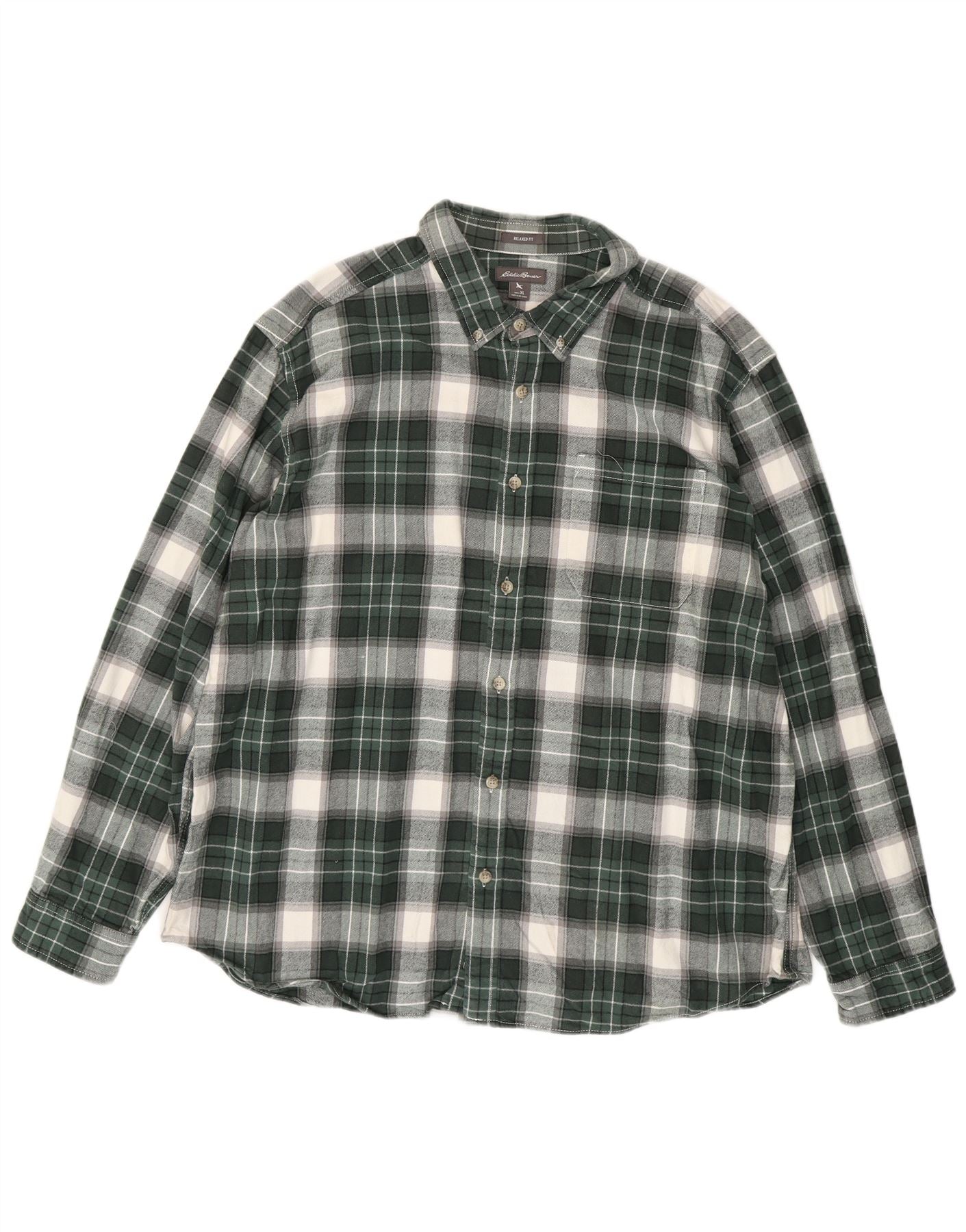 EDDIE BAUER Мужская фланелевая рубашка свободного кроя XL, зеленая клетка, хлопок