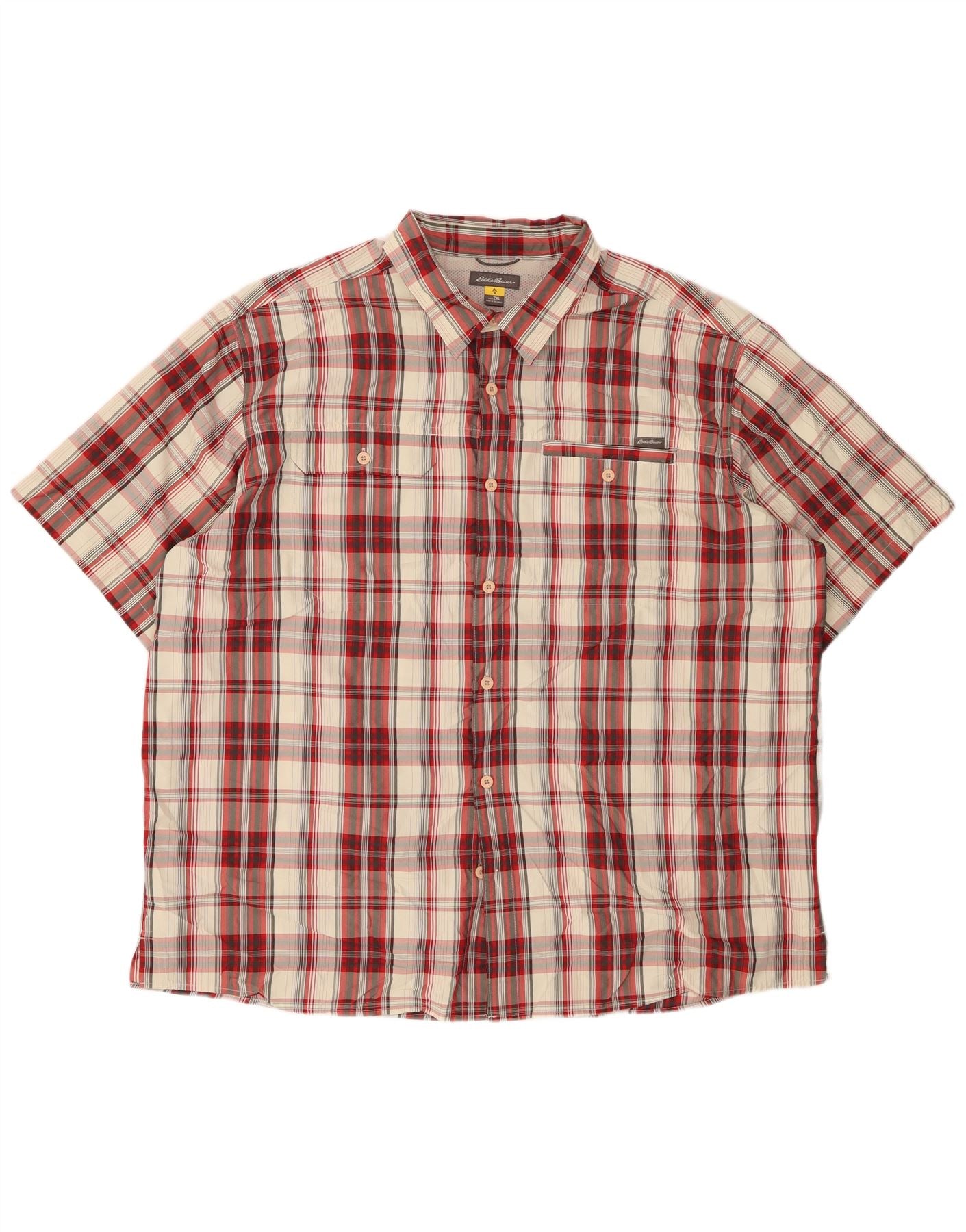 Мужская рубашка с коротким рукавом EDDIE BAUER 2XL, полиэстер в красную клетку