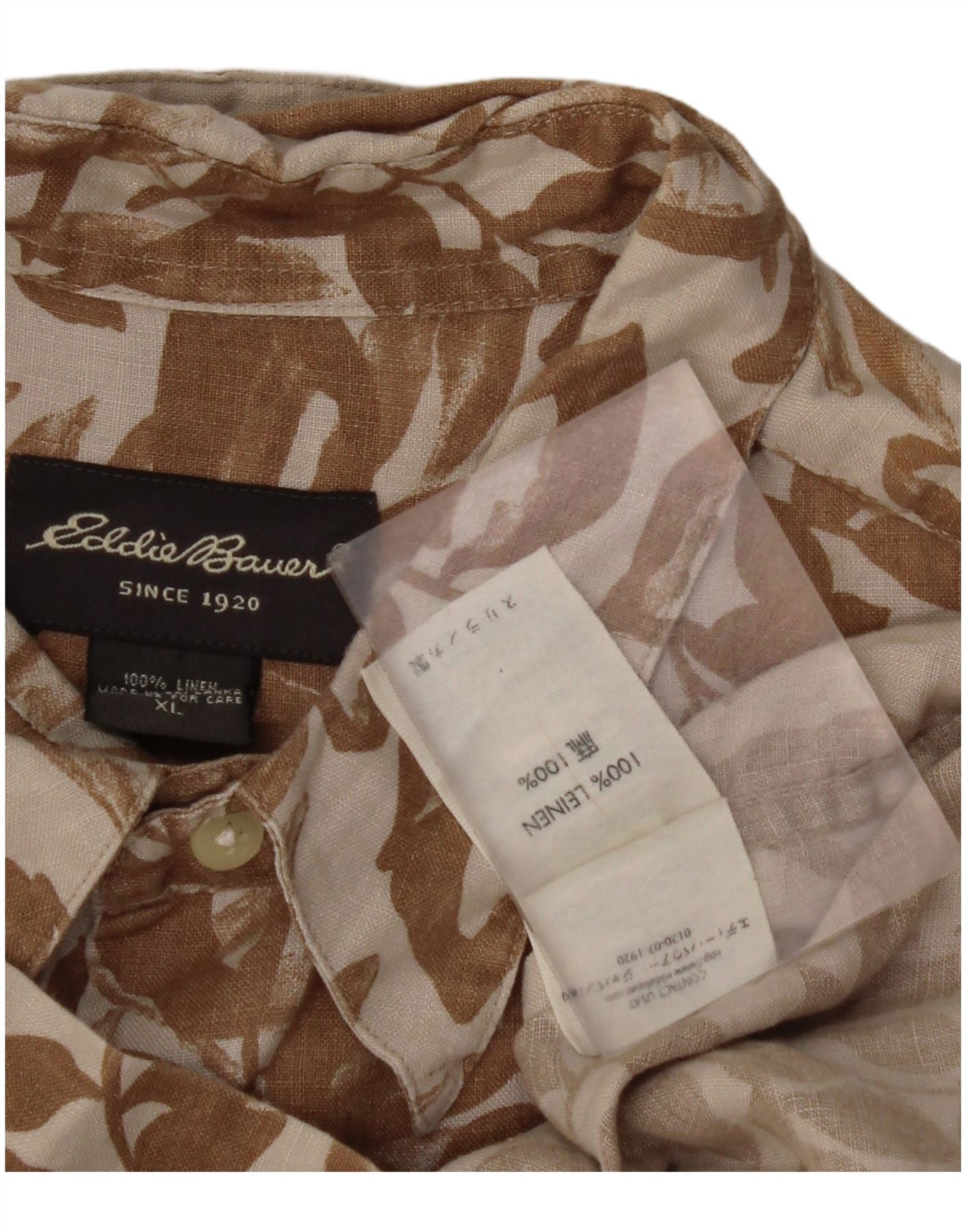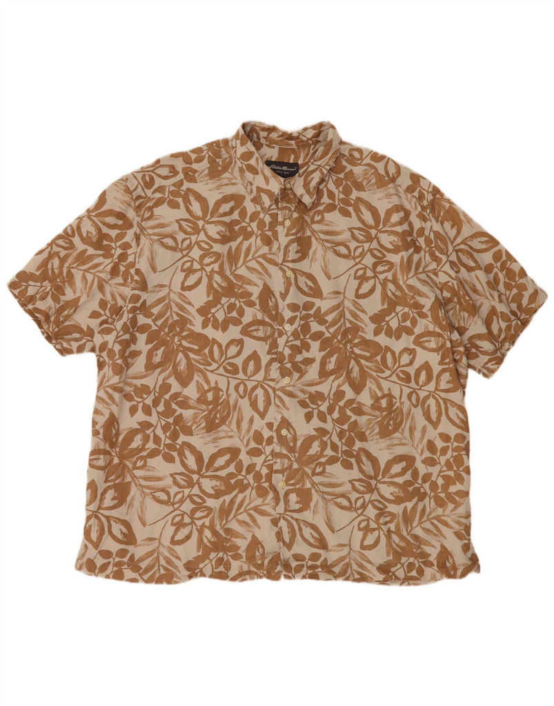 EDDIE BAUER Мужская рубашка с коротким рукавом XL, бежевый лен с цветочным принтом