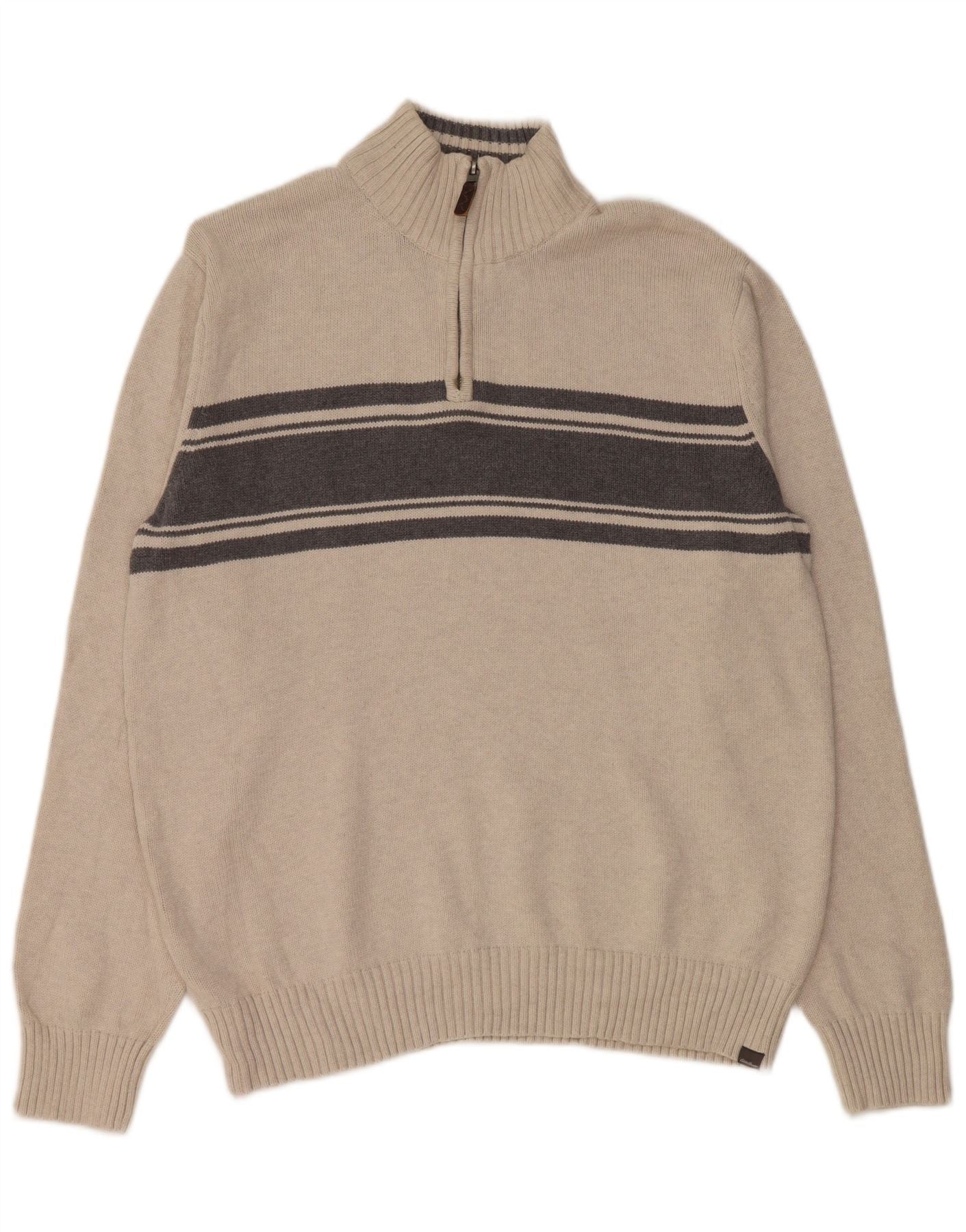 Мужской свитер EDDIE BAUER с воротником на молнии, большой бежевый, хлопковый с цветными блоками