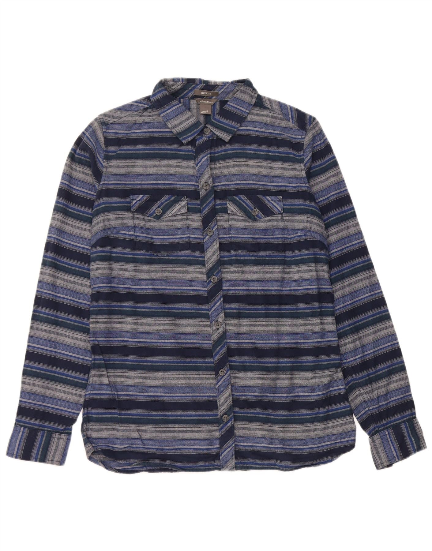 Женская фланелевая рубашка классического кроя EDDIE BAUER UK 10, маленькая, темно-синяя в полоску