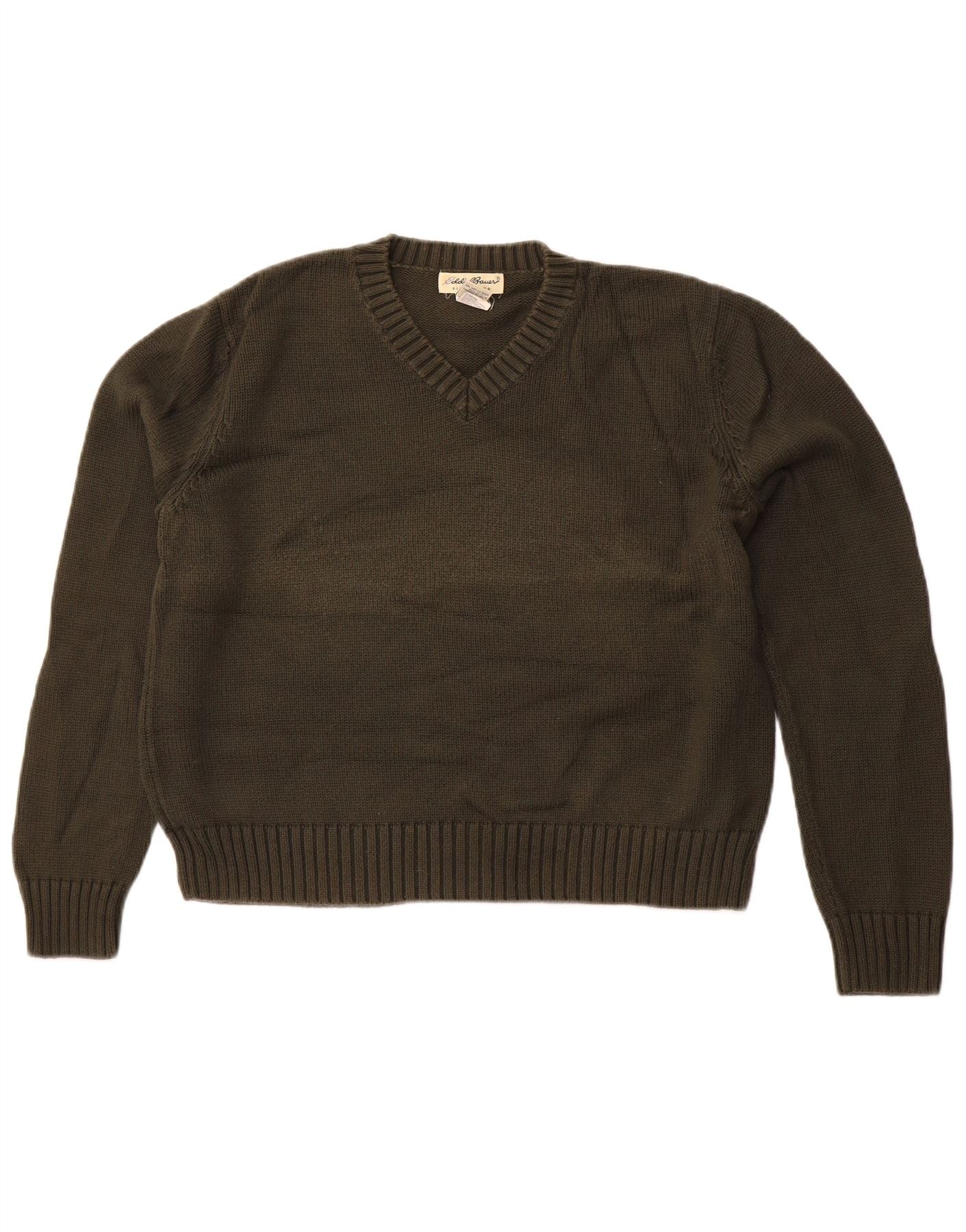 Женский укороченный джемпер с v-образным вырезом EDDIE BAUER, Великобритания 16, большой зеленый хлопок