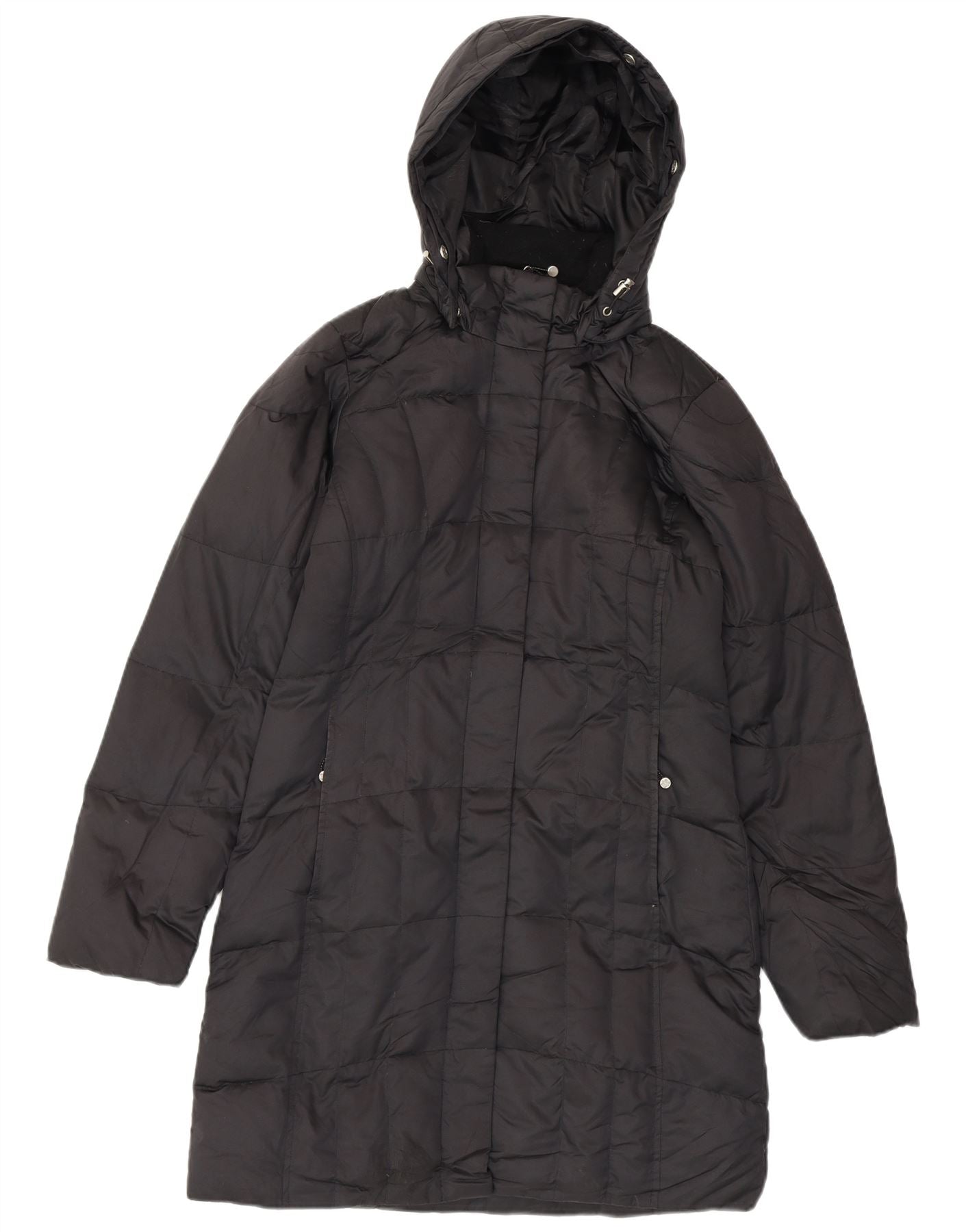 EDDIE BAUER Женское длинное стеганое пальто с капюшоном UK 6 XS, черный полиэстер