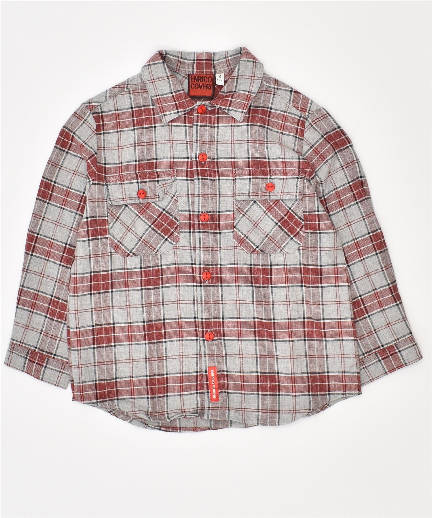 ENRICO COVERI Рубашка для мальчика 18-24 месяцев, серая клетка, хлопок