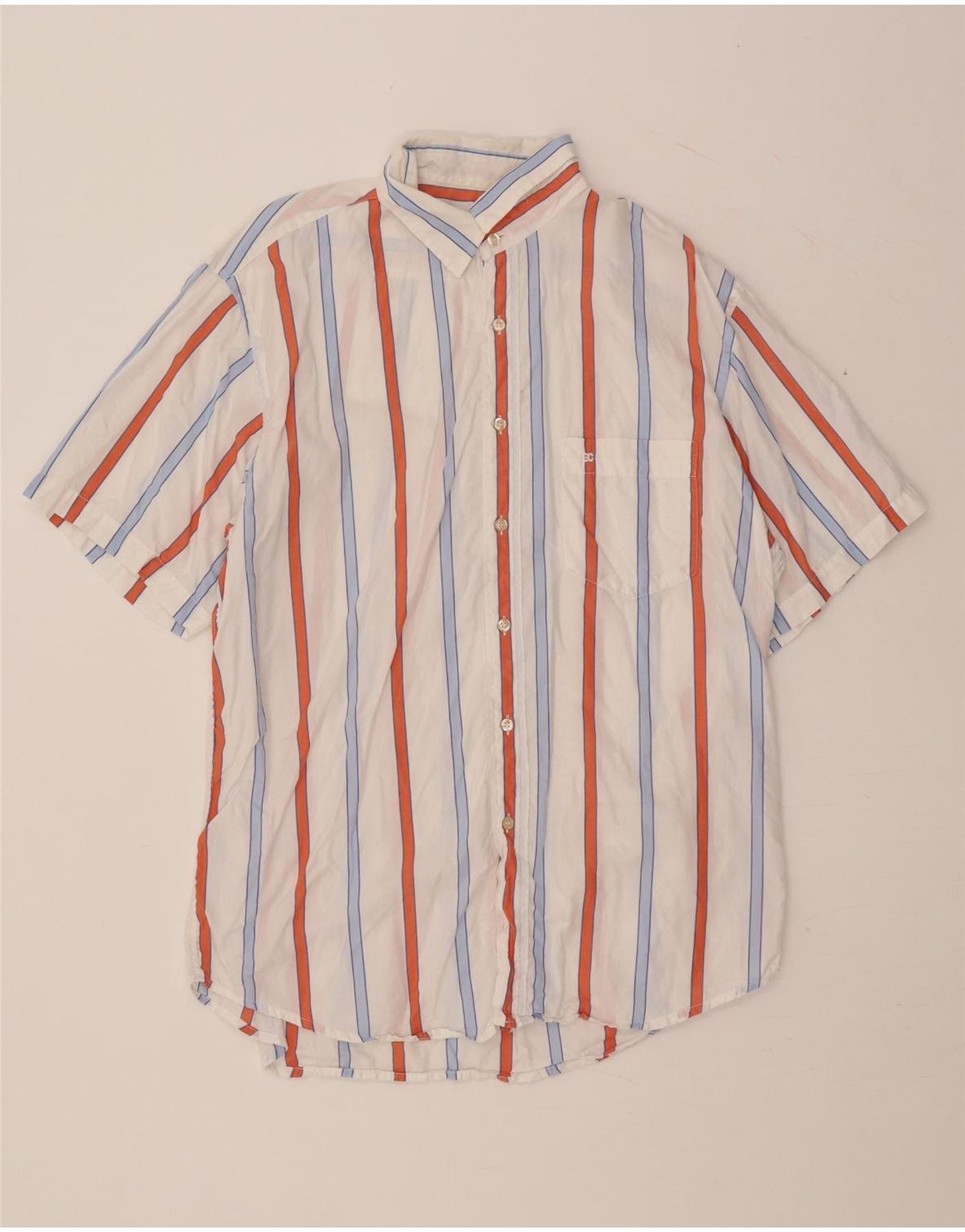 - Описание ИИ: Мужская рубашка Enrico Coveri изготовлена из легкой тканой ткани. Он имеет четкий разноцветный полосатый узор белого, красного и синего цветов. Вырез с воротником и застежка на пуговицы спереди придают модели классический вид. Короткие рукава и классический крой обеспечивают комфорт и легкость ношения. Один нагрудный карман добавляет практичности. Эта универсальная вещь идеально подходит для элегантных повседневных случаев.