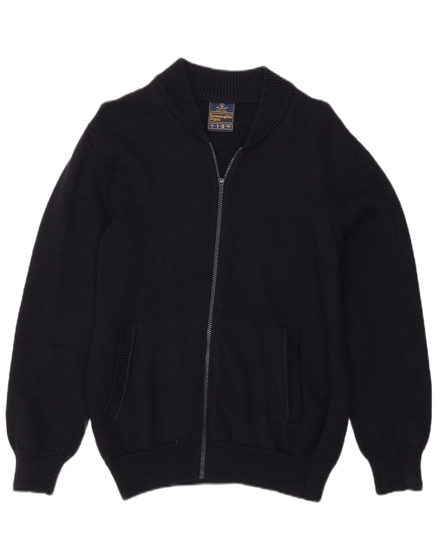 Мужской свитер-кардиган ERMENEGILDO ZEGNA UK 36, маленький, темно-синий, из натуральной шерсти