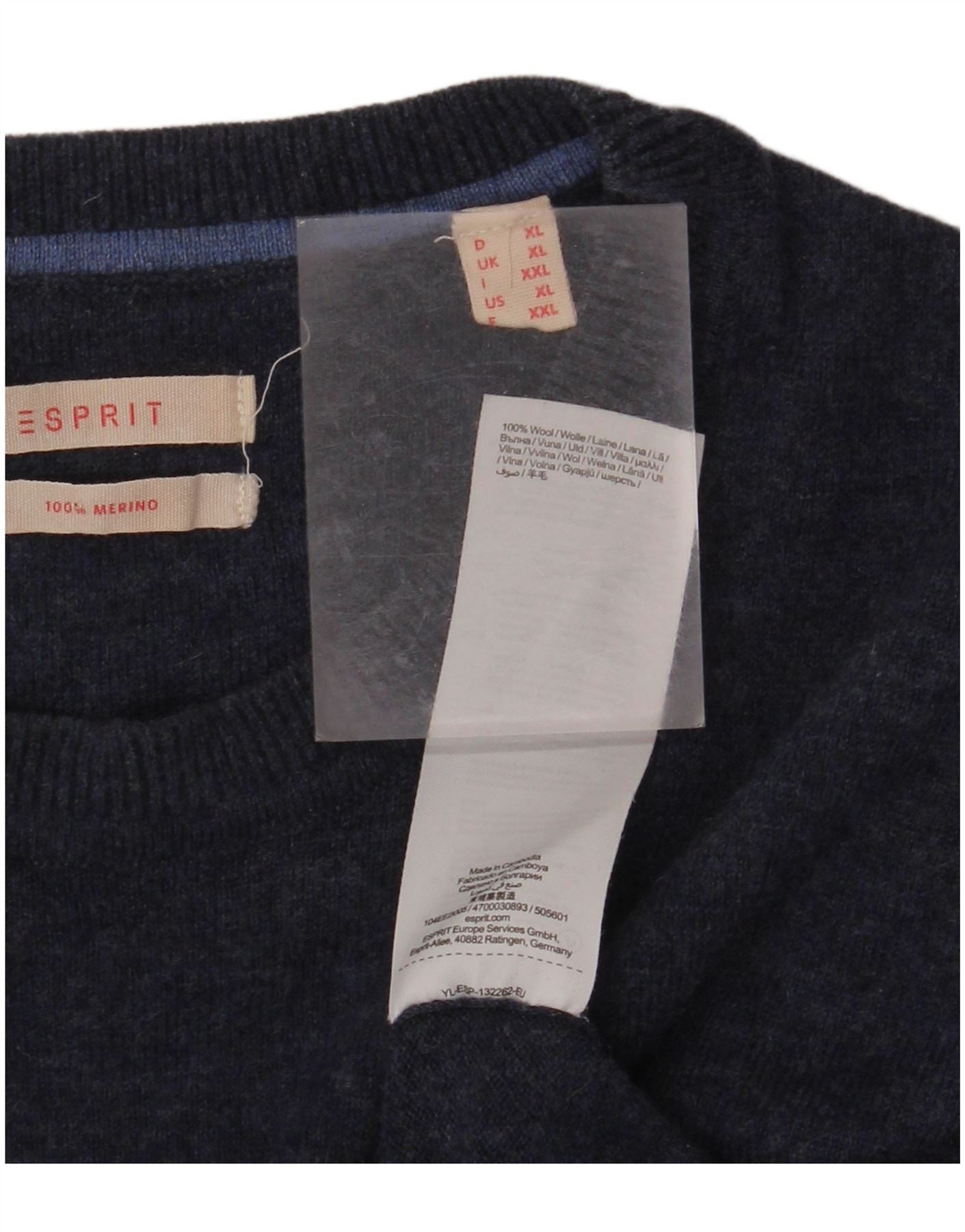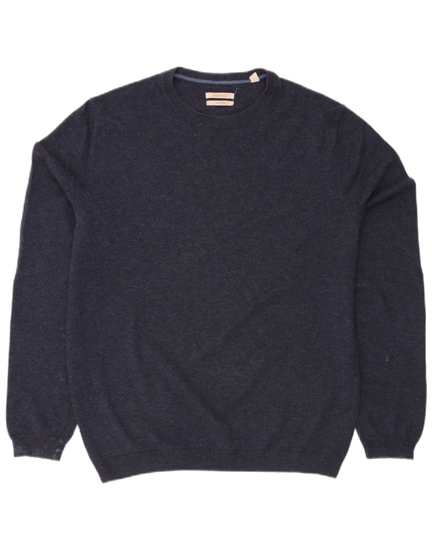 ESPRIT Mens Crew Neck Jumper Sweater XL Navy Blue Merino Wool