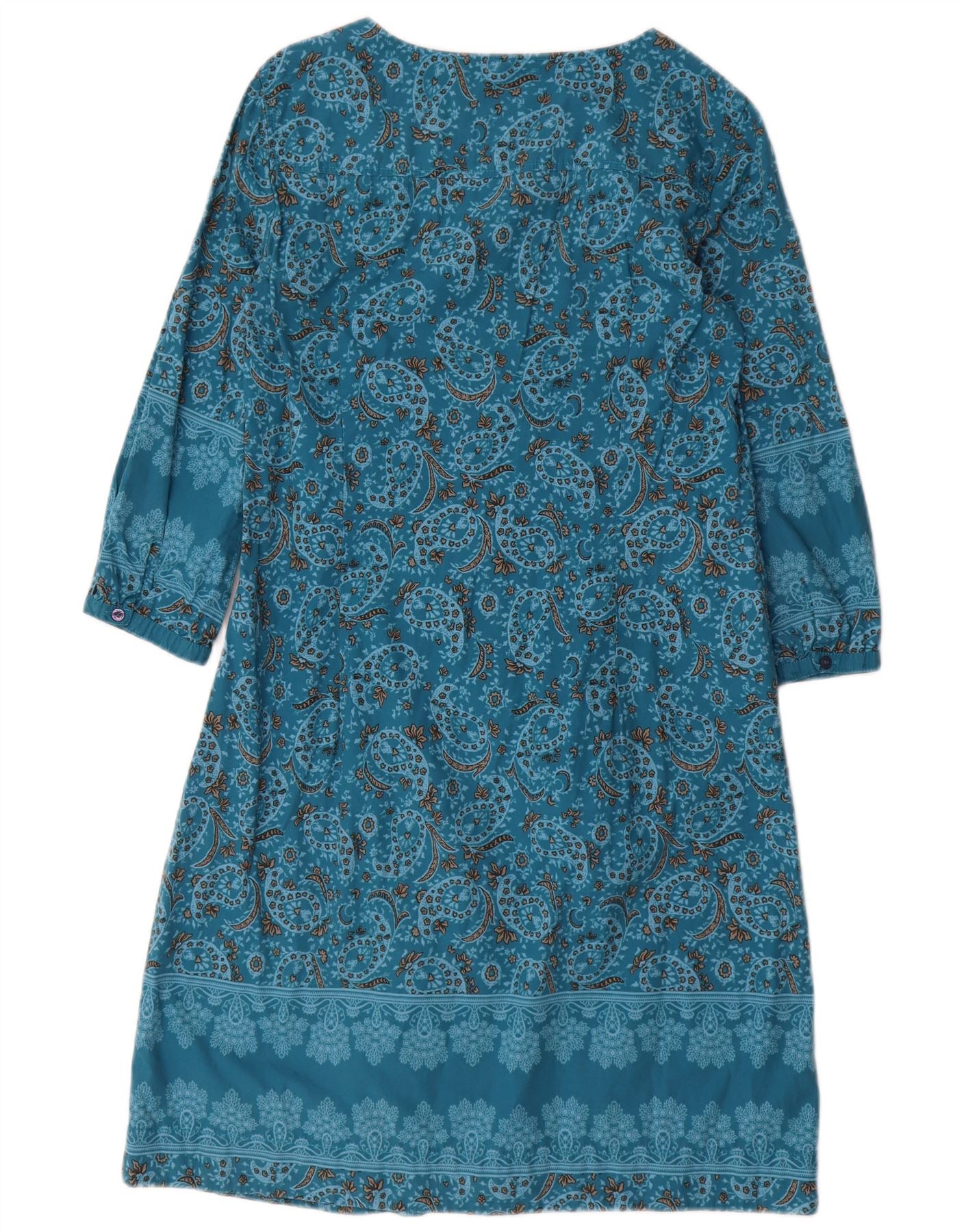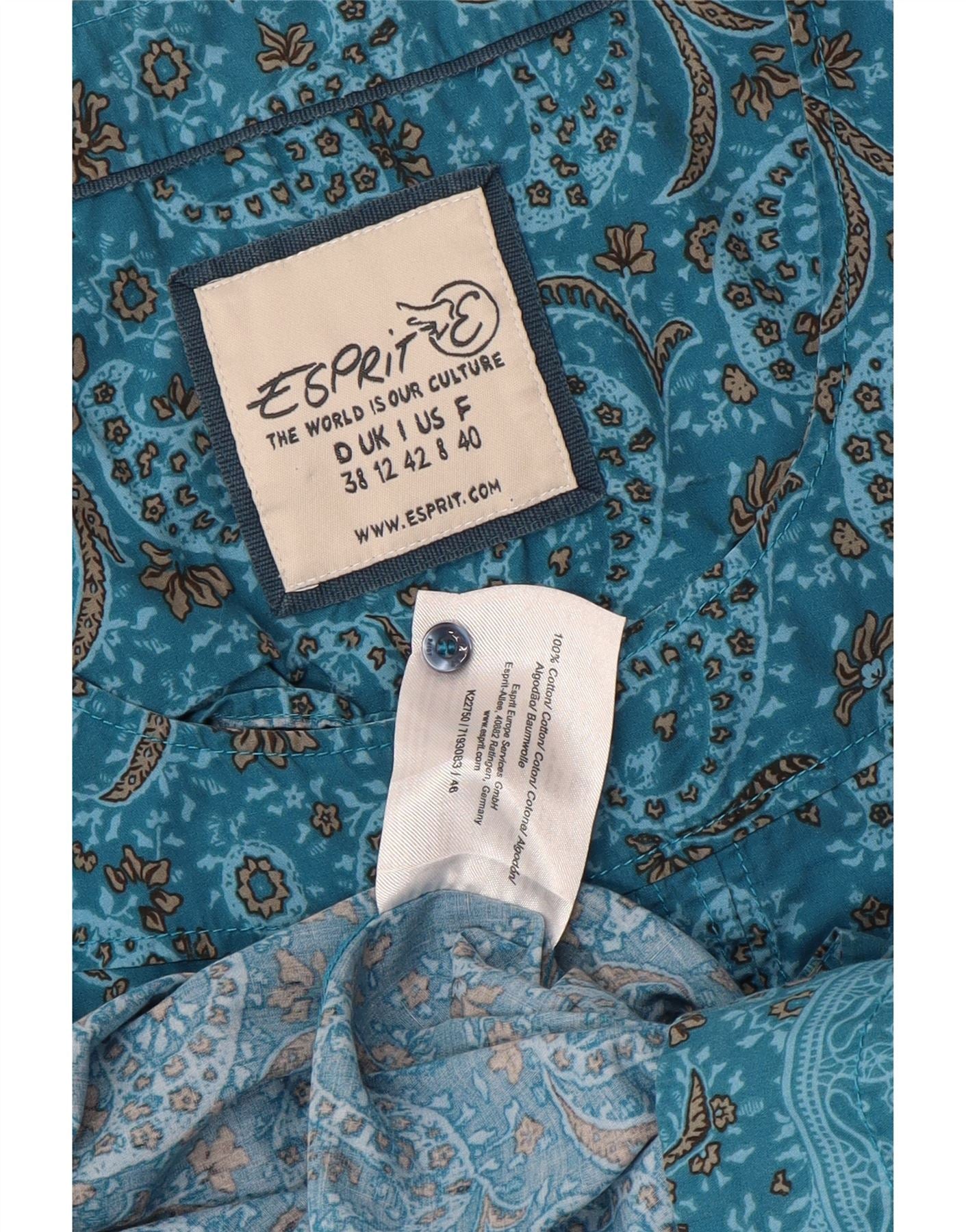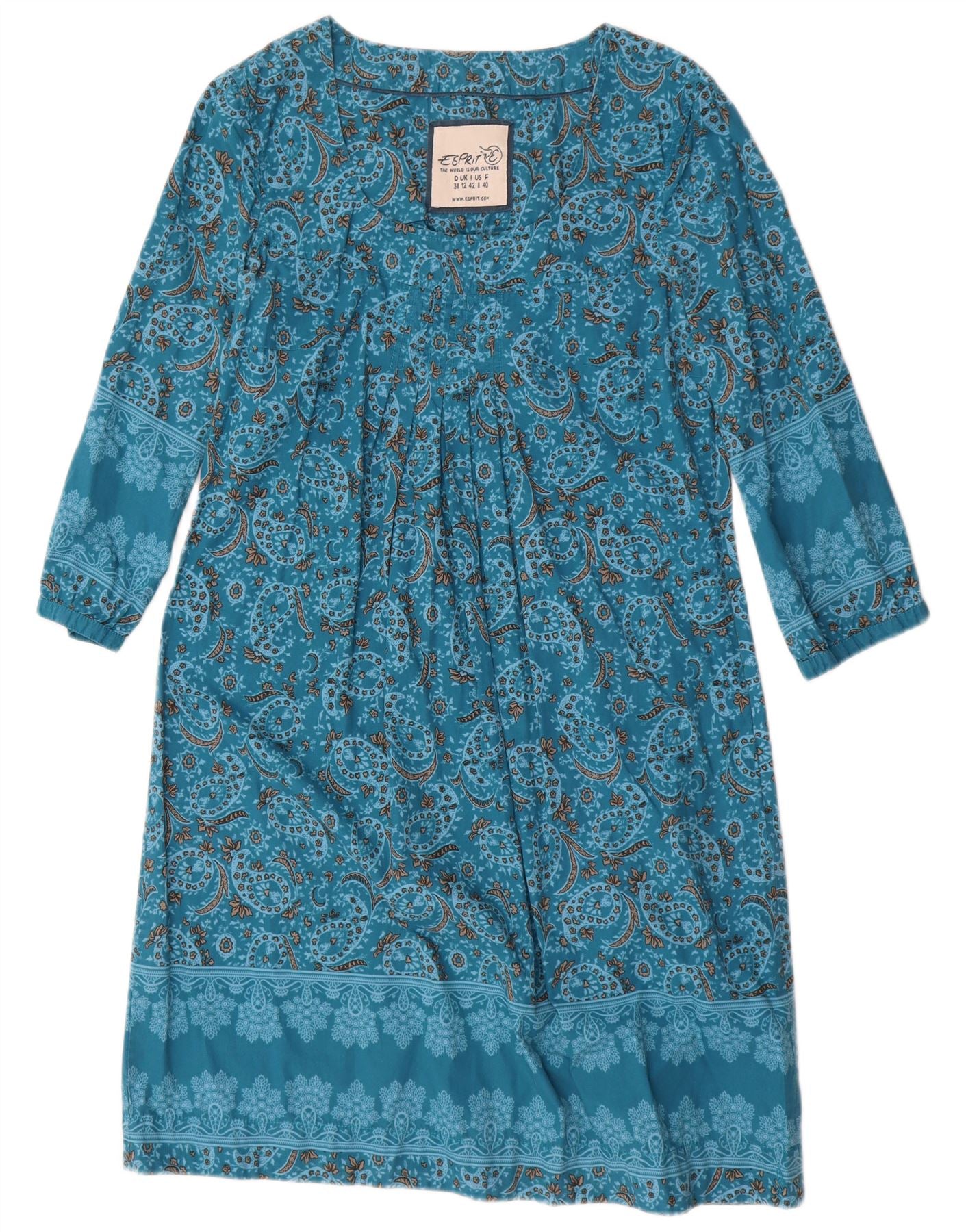 ESPRIT Womens 3/4 Sleeve Basic Dress UK 12 Medium Blue Paisley Cotton