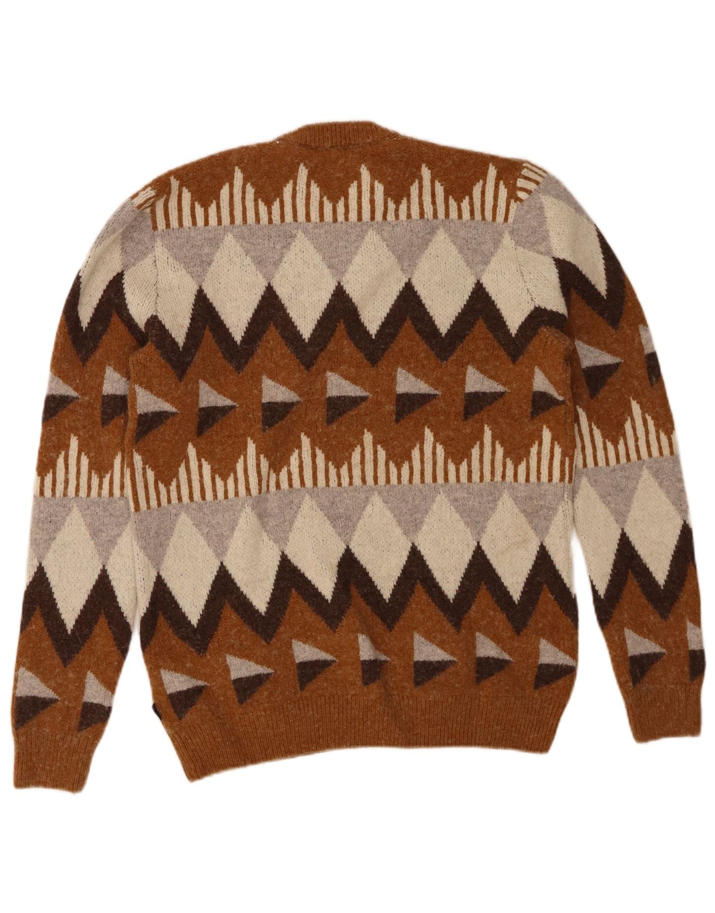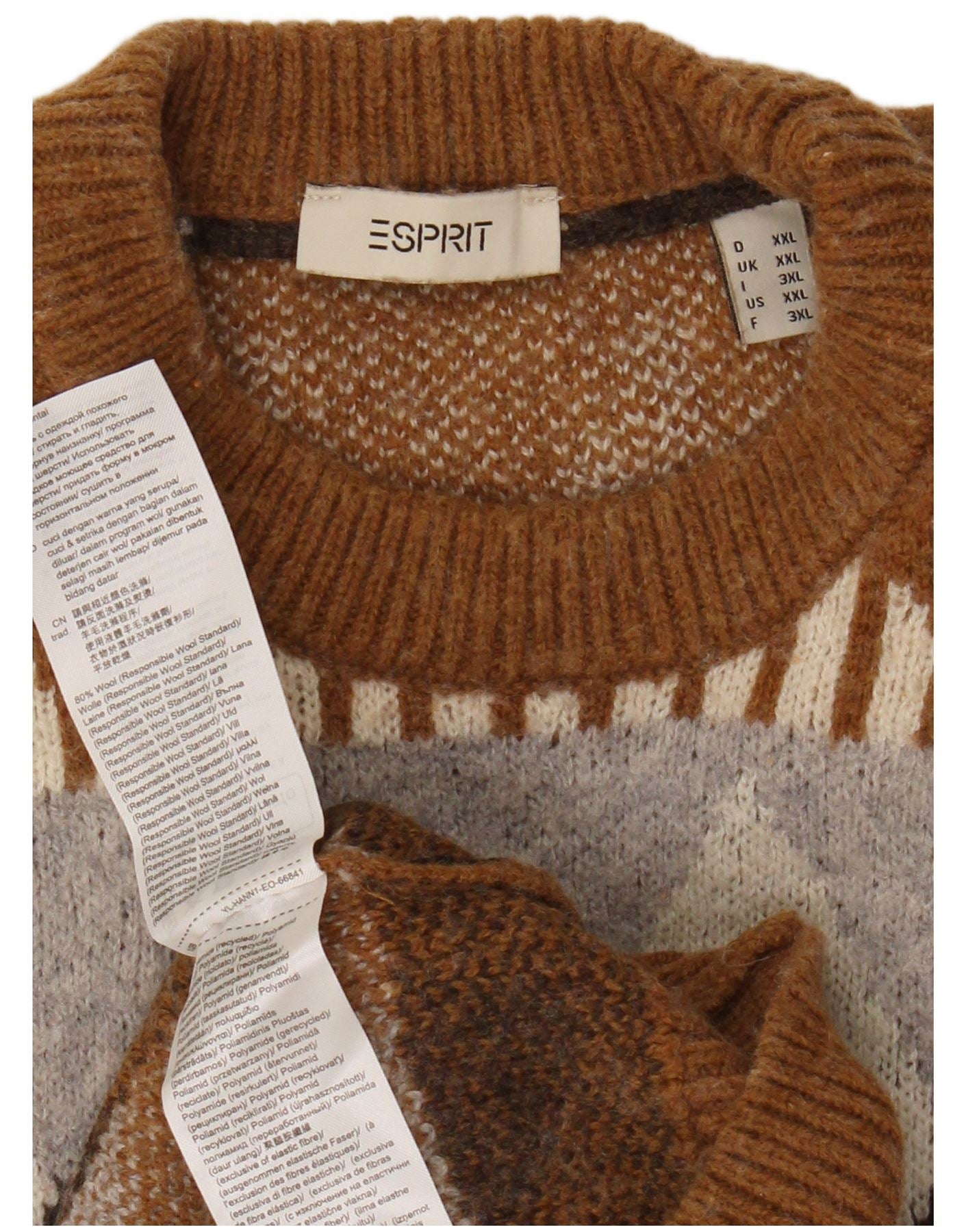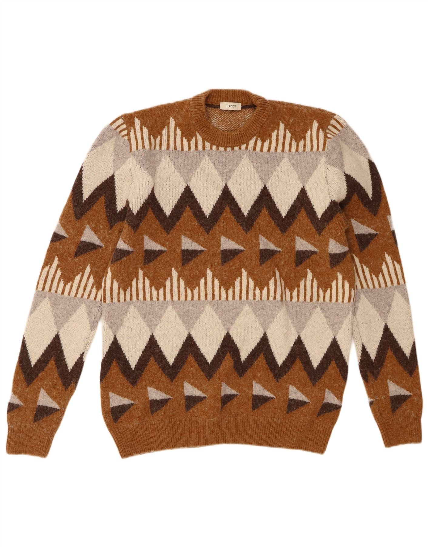 ESPRIT Womens Crew Neck Jumper Sweater UK 20 2XL Brown Geometric Wool