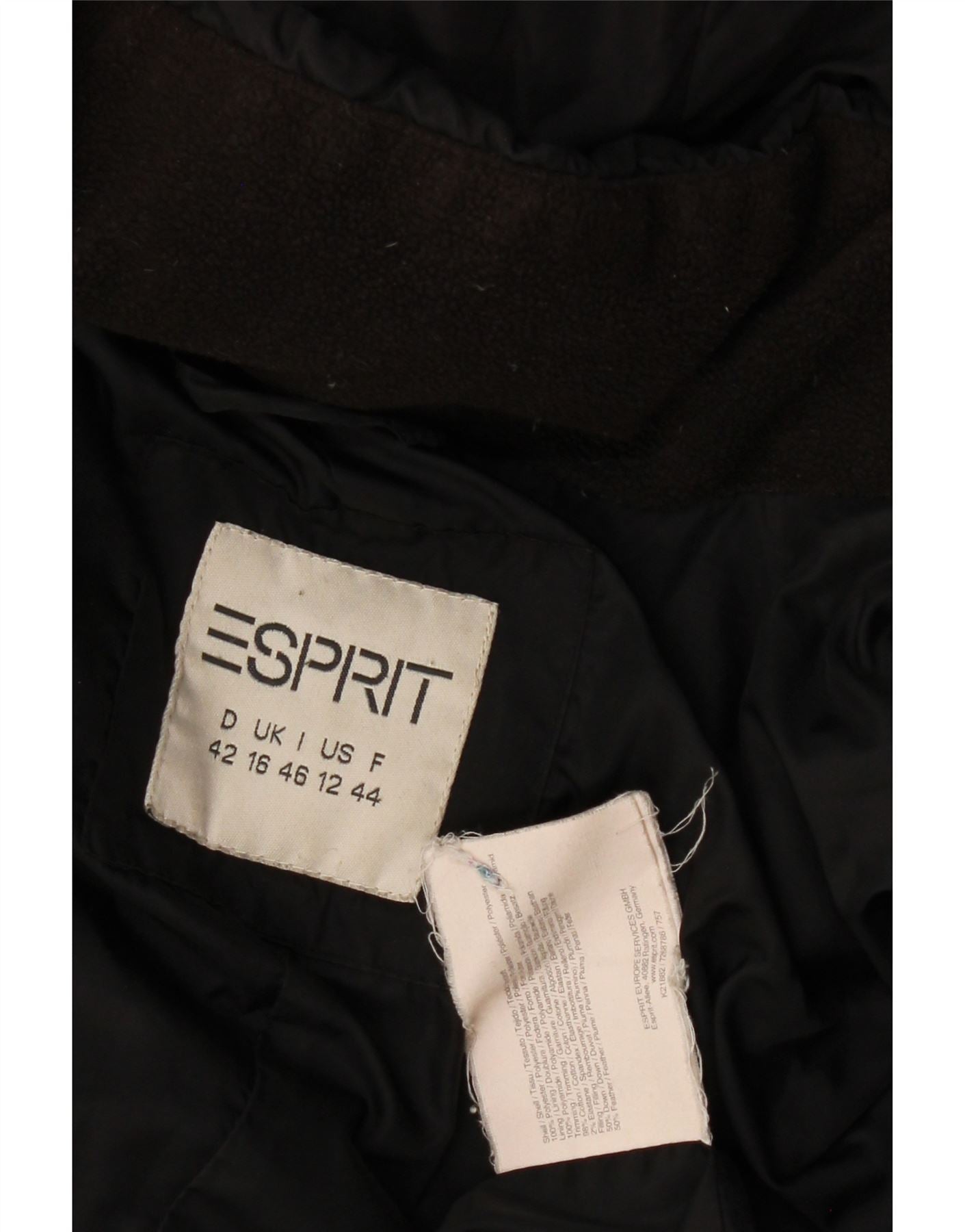 Женское стеганое пальто с капюшоном Esprit UK 16, большой черный полиамид