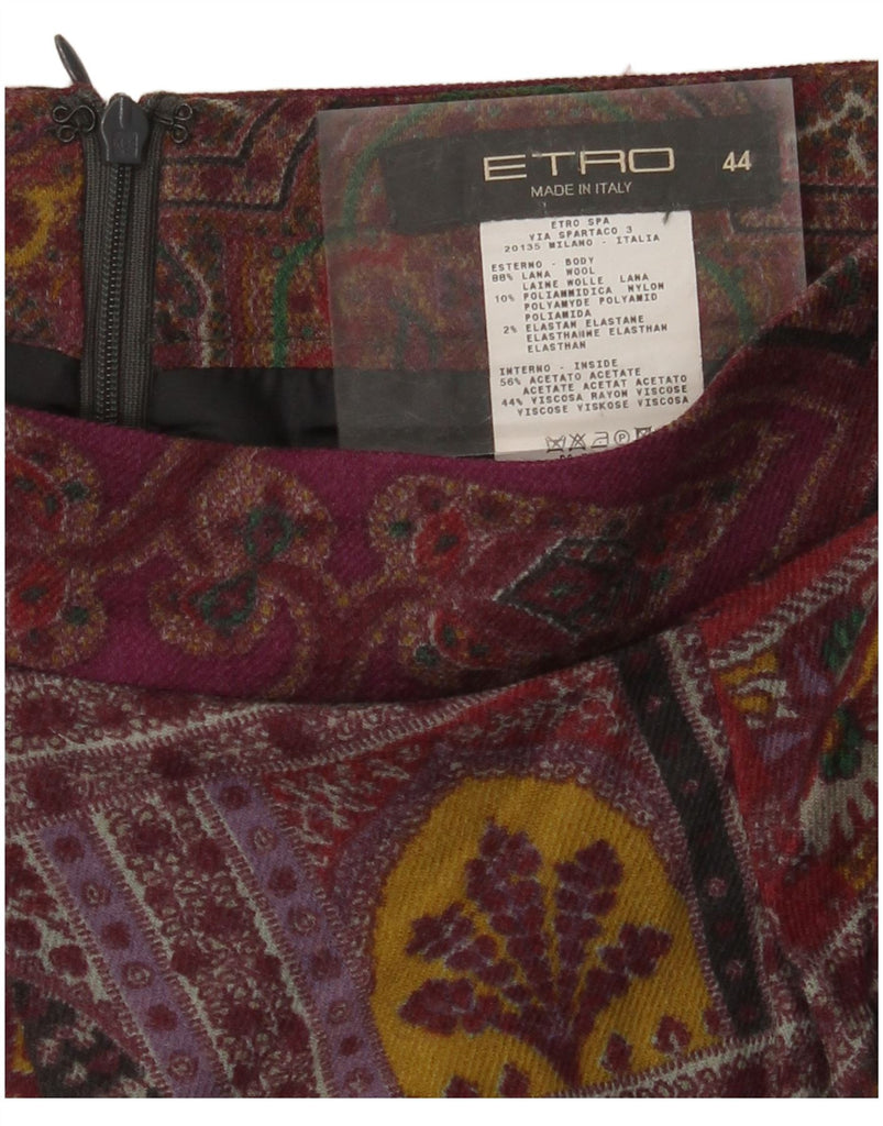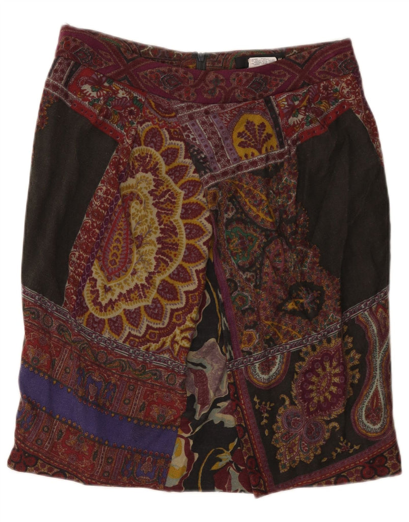 ETRO Womens Midi Skirt IT 44 Medium W30 Burgundy Patchwork Wool