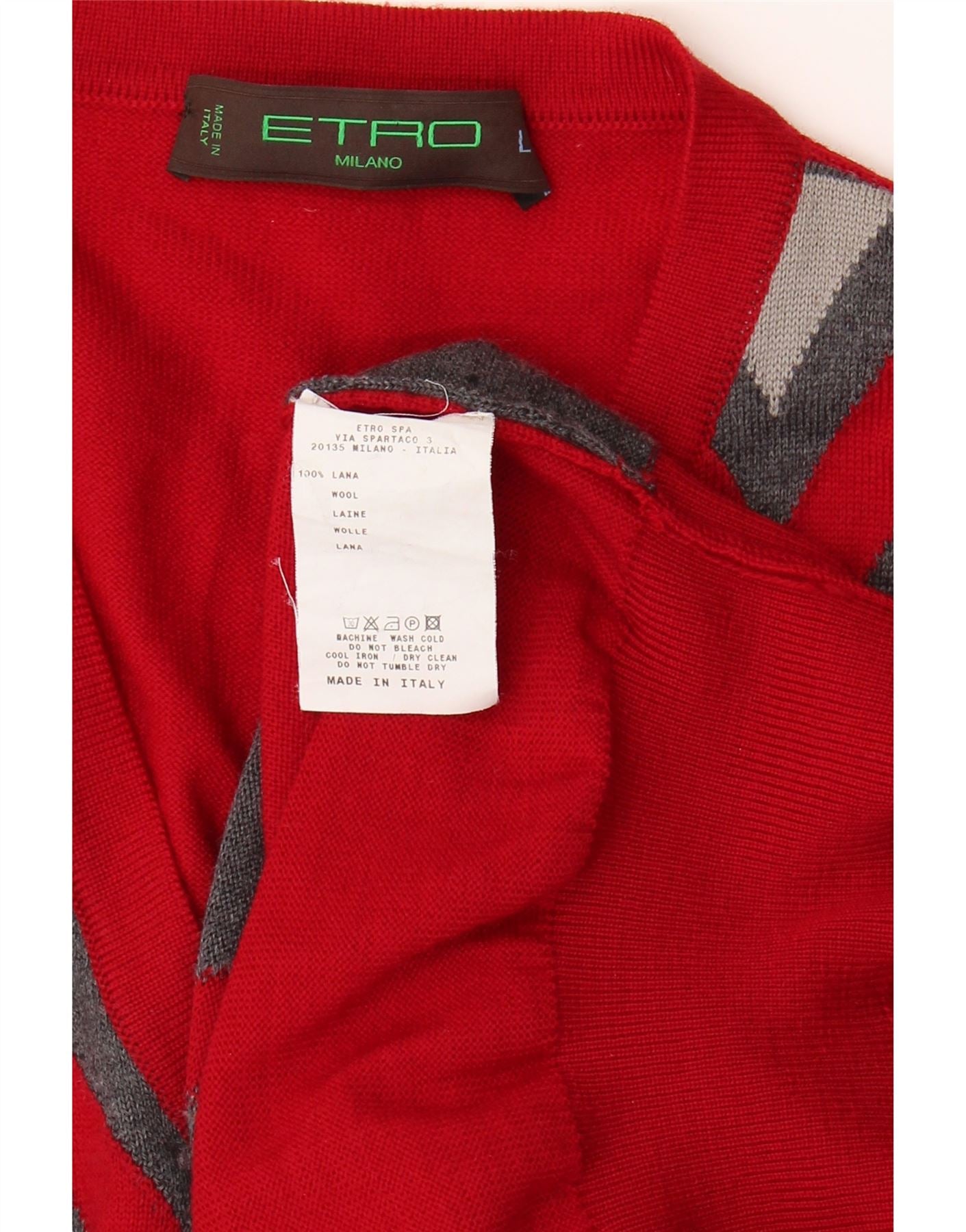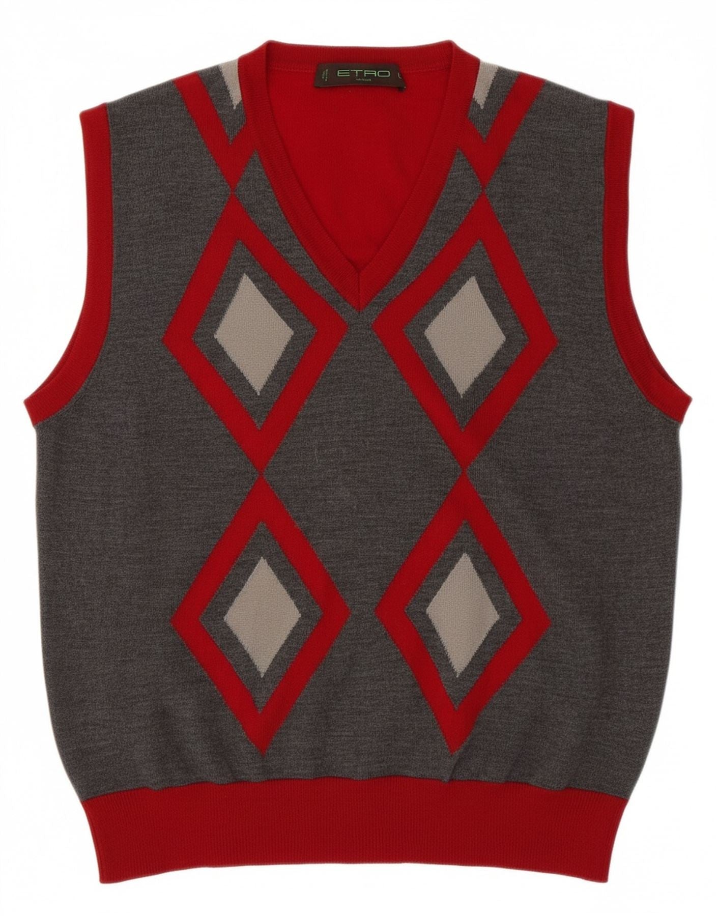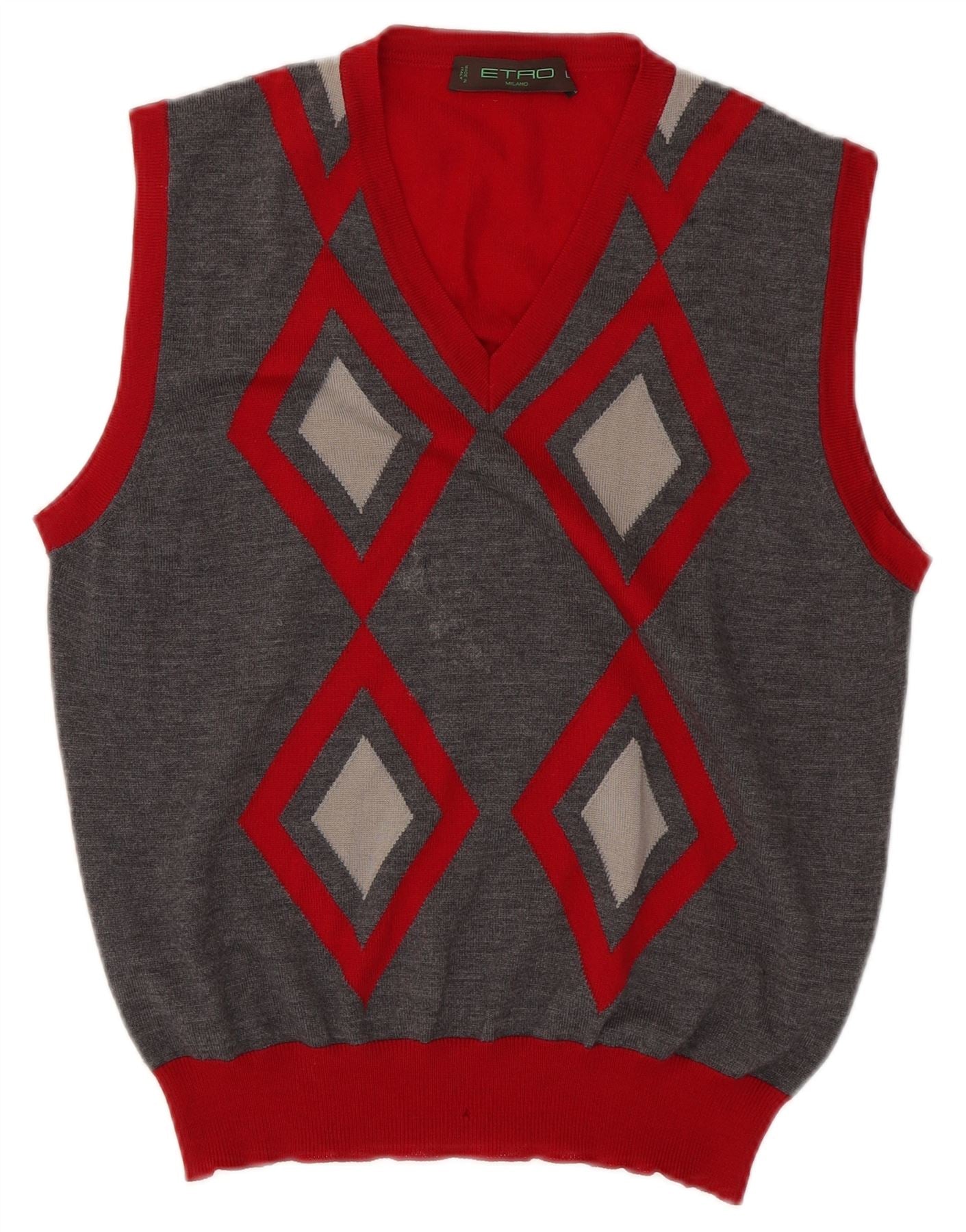 ETRO Womens Milano Vest Tank Top UK 16 Large Red Argyle/Diamond Wool