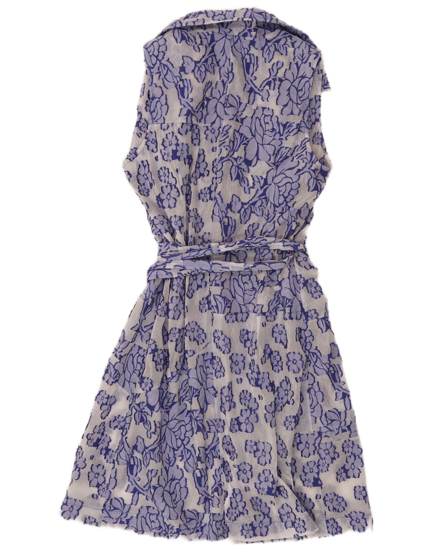 FAIRLY Womens Sleeveless Wrap Dress UK 14 Medium Blue Floral