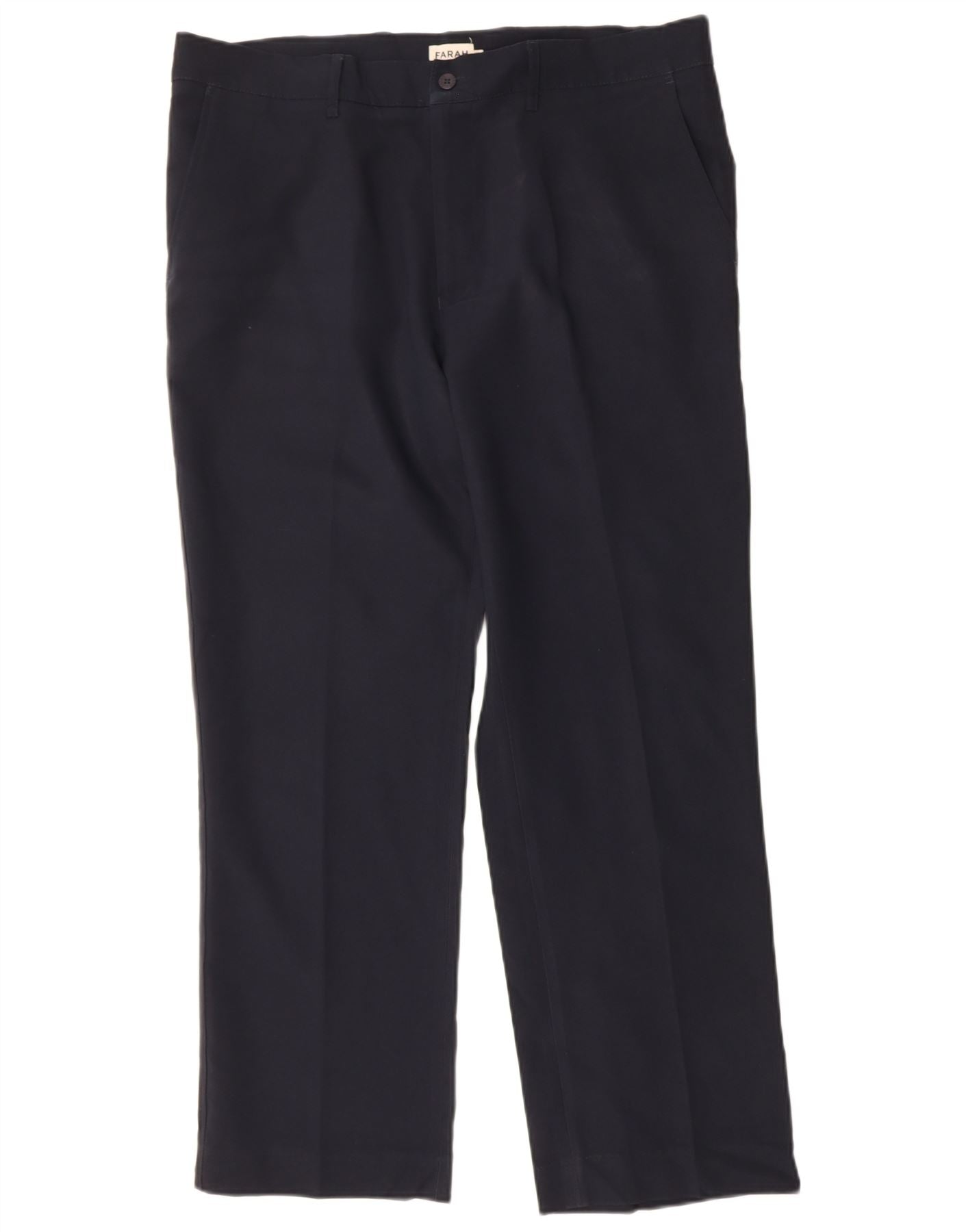 FARAH Mens Classic Fit Straight Chino Trousers W38 L29 Navy Blue Polyester