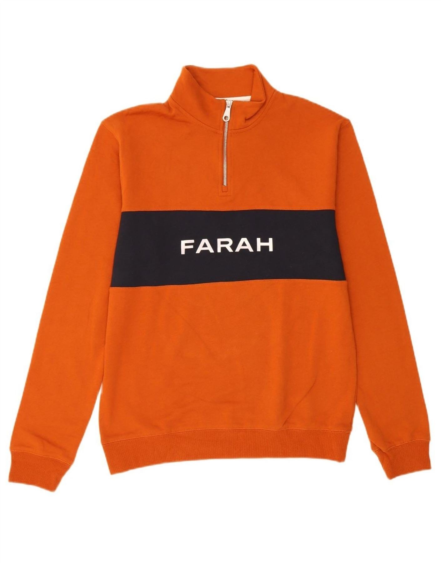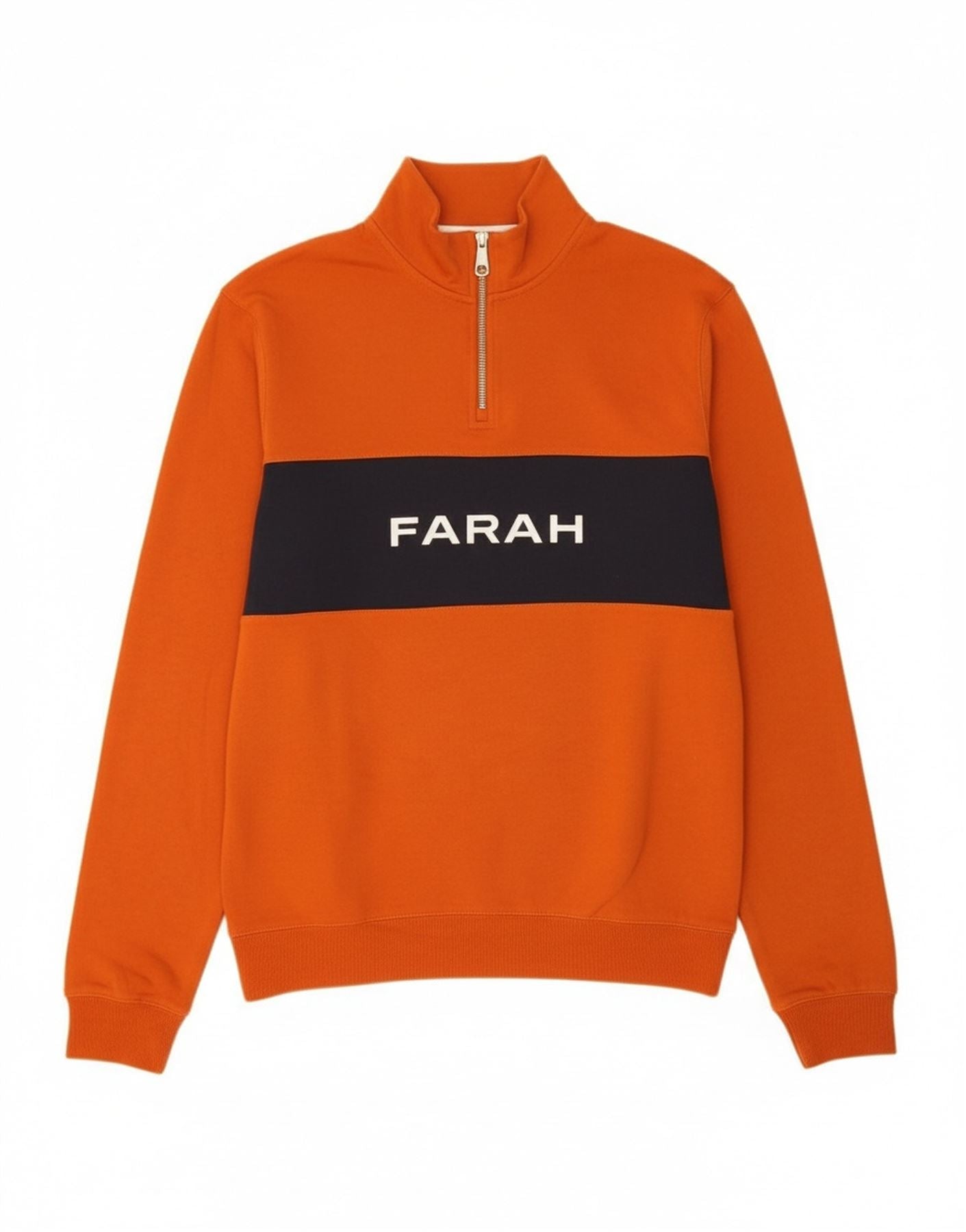 FARAH Mens Graphic Zip Neck Sweatshirt Jumper Large Orange Colourblock