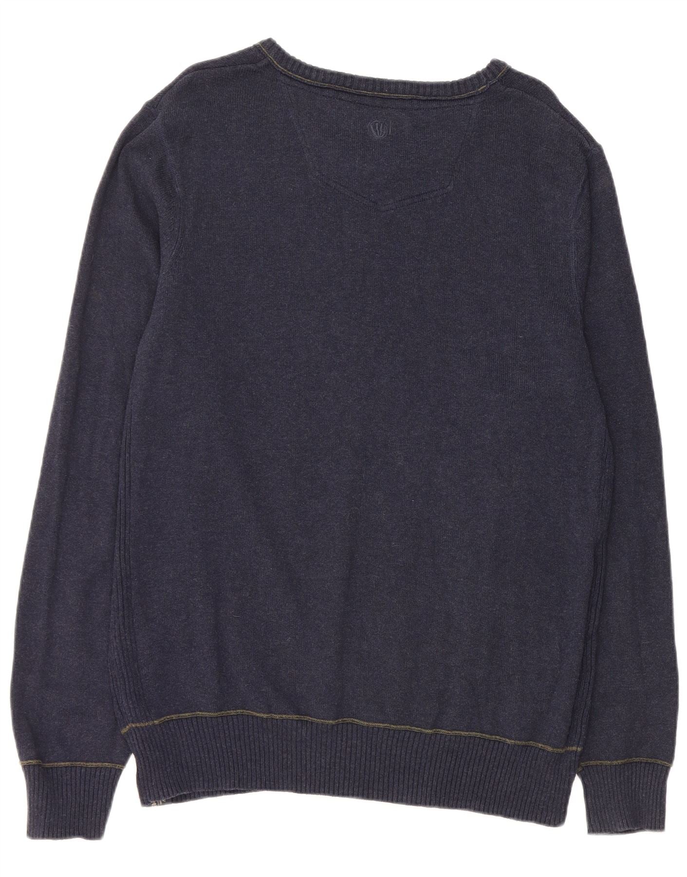 Мужской джемпер с вырезом лодочкой FAT FACE, большой темно-синий хлопковый свитер