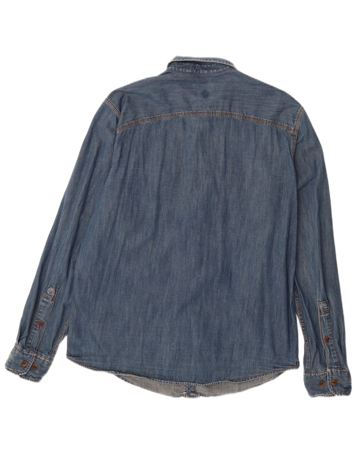 FAT FACE Мужская классическая джинсовая рубашка с потертостями, большой синий хлопок
