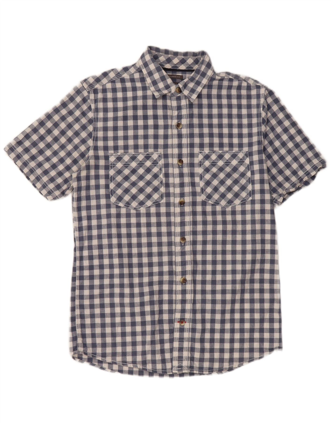 FAT FACE Мужская классическая рубашка с коротким рукавом XS Темно-синяя хлопковая клетка в мелкую клетку