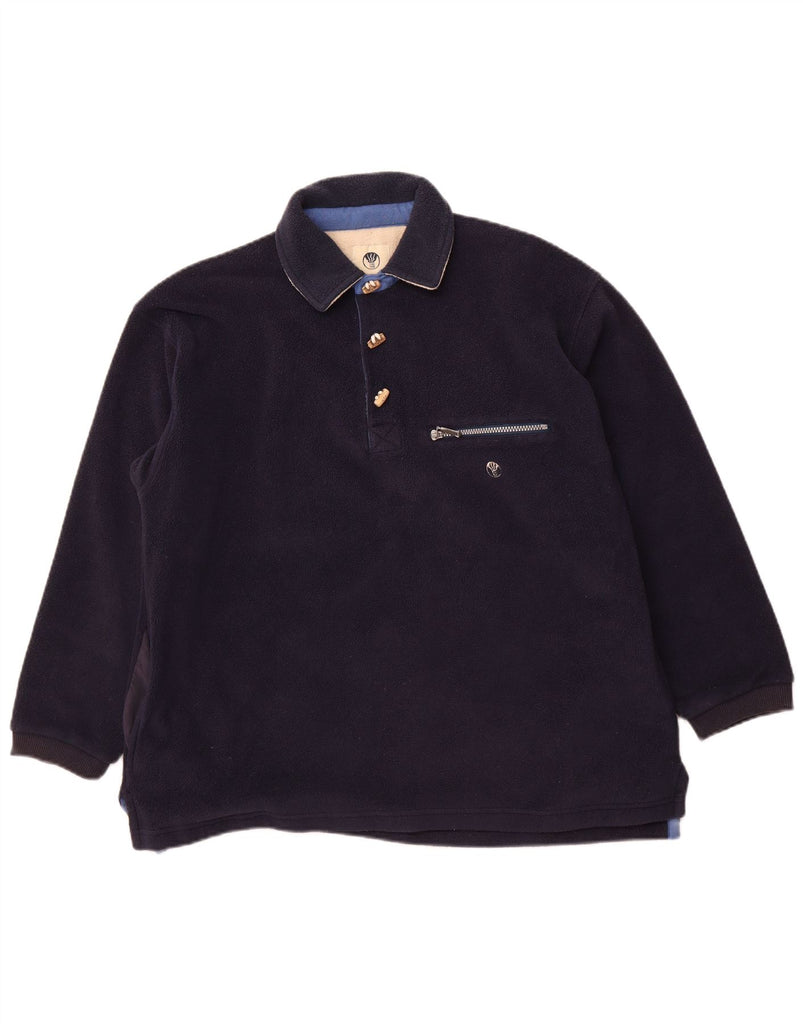 Мужской флисовый джемпер FAT FACE с воротником-поло, средний темно-синий, полиэстер