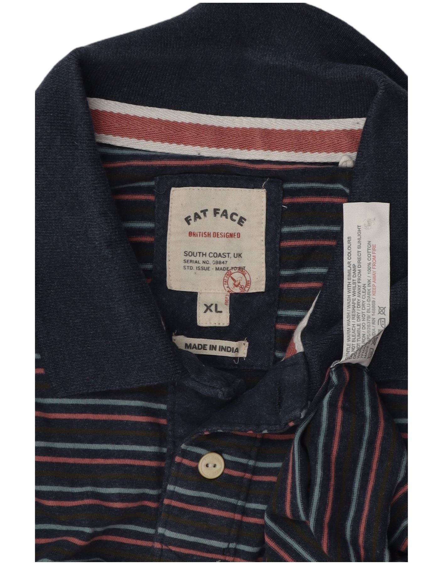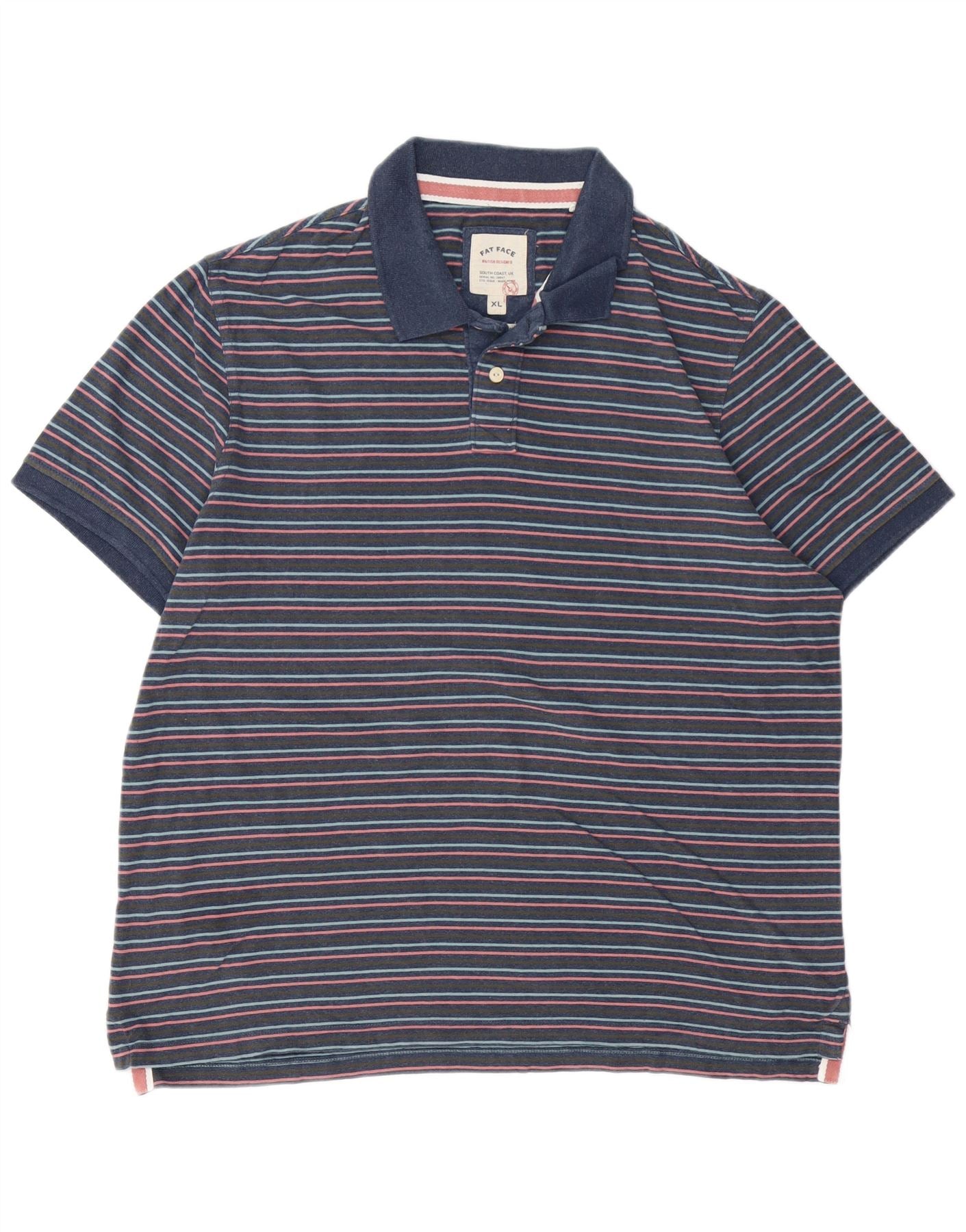 Мужская рубашка поло FAT FACE XL, хлопковая темно-синяя полоска