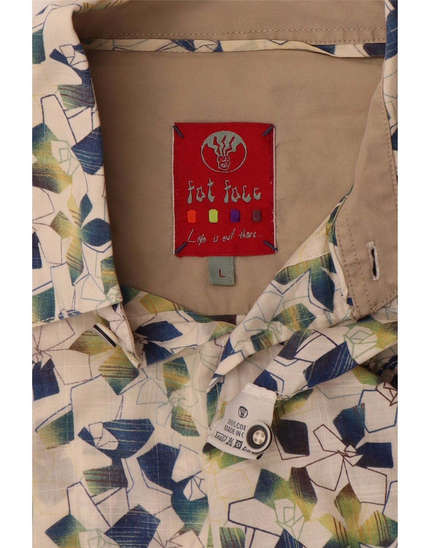 FAT FACE Мужская рубашка с коротким рукавом, большая белая хлопковая рубашка с геометрическим рисунком