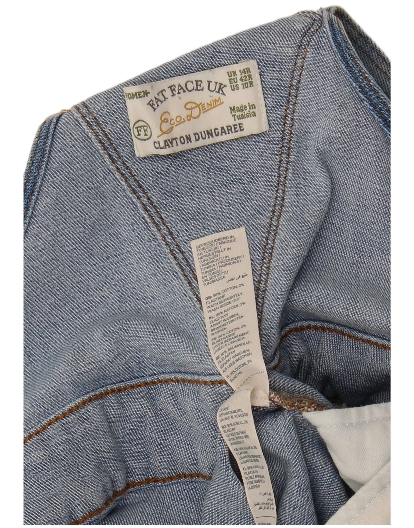 - AI Description: This Fat Face womens blue denim jumpsuit is crafted from a comfortable cotton blend with a slight stretch. Its relaxed fit ensures ease of movement. Adjustable buckle fastenings allow for a customisable wear. Practical pockets add functionality. The classic style offers timeless appeal for everyday casual outfitting.