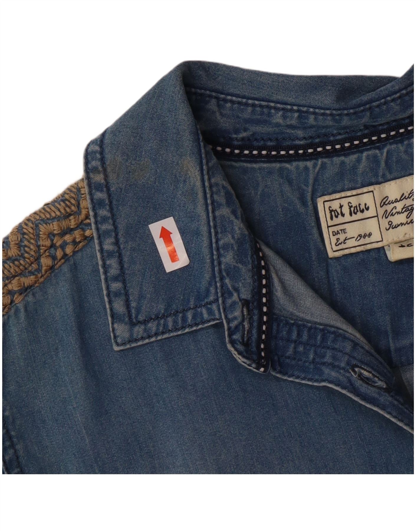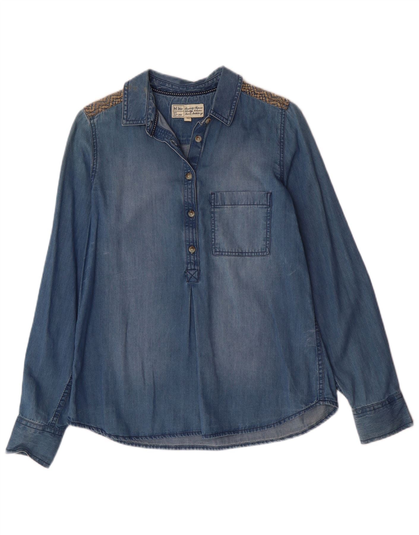 Женская джинсовая рубашка-пуловер Fat Face UK 12, хлопковый богемный цвет среднего синего цвета