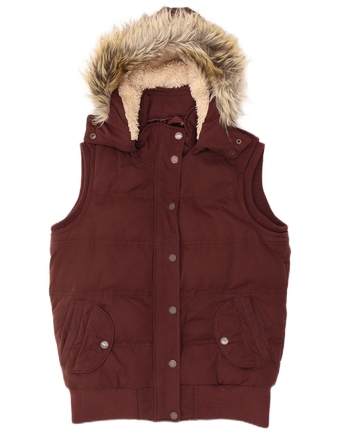 Home > Женский > Депоп Одежда > Женский утепленный жилет с капюшоном Fat Face UK 10, маленький бордовый полиэстер