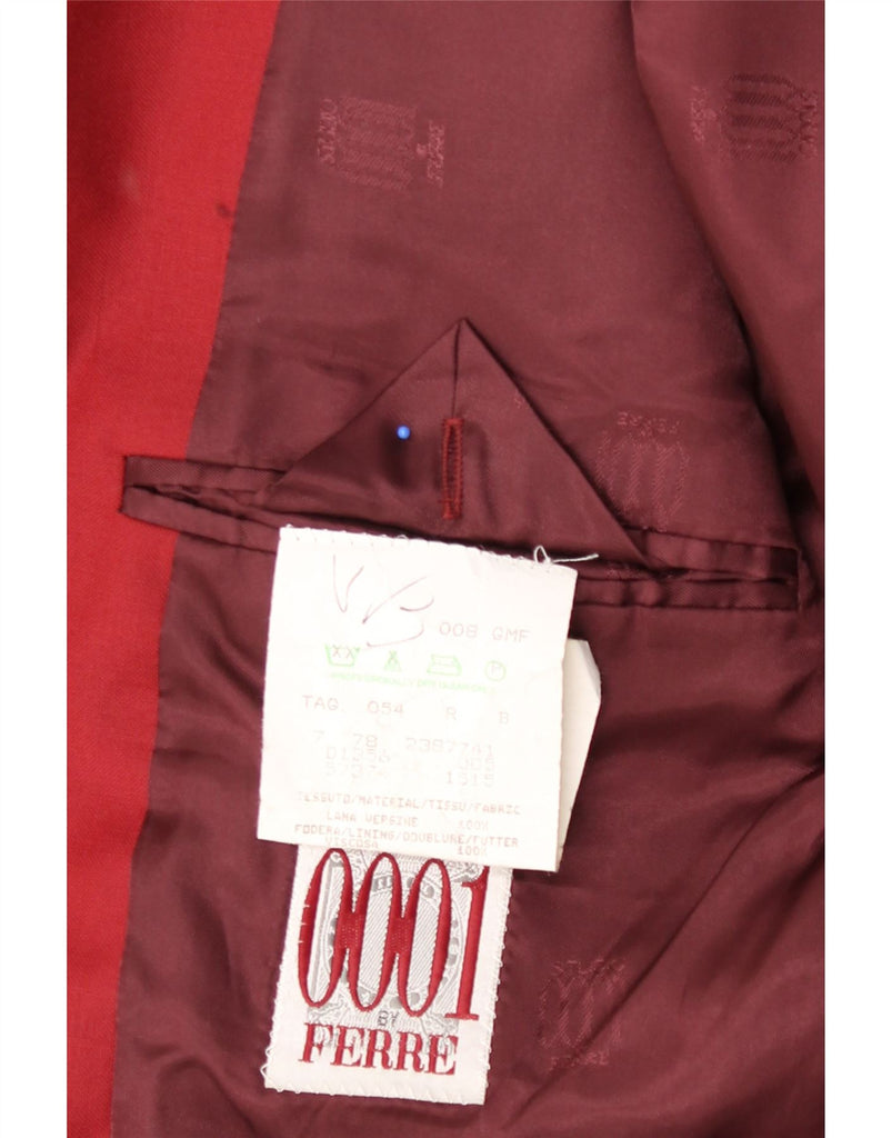 FERRE Mens 001 3 Button Blazer Jacket IT 54 2XL Burgundy Virgin Wool