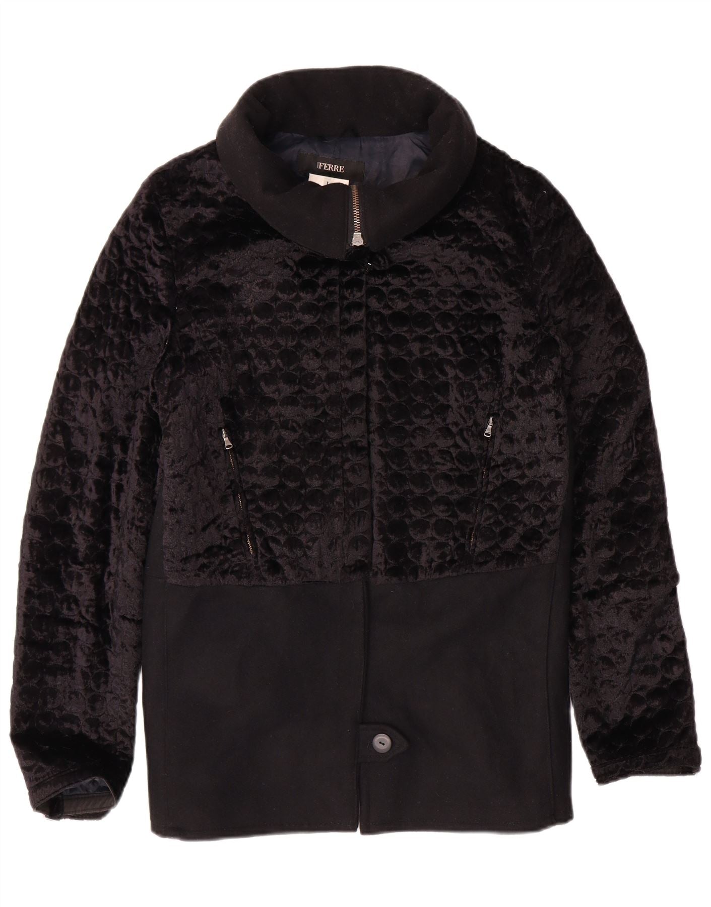 Женская бархатная куртка FERRE UK 14, большая, черная, классическая, из шерсти