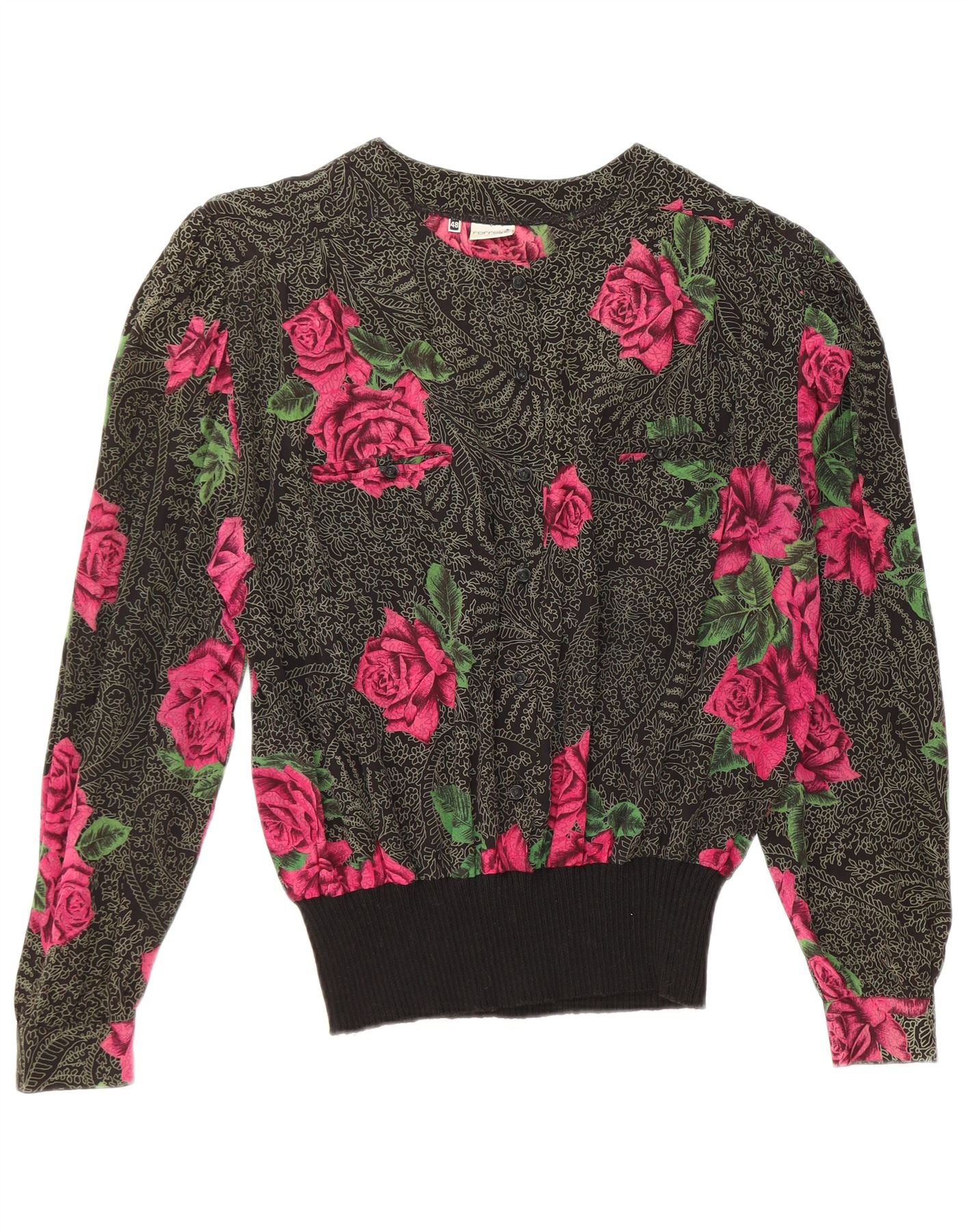 FERRETTI Женская блузка с длинным рукавом IT 48 XL, черная, шелковая с цветочным принтом