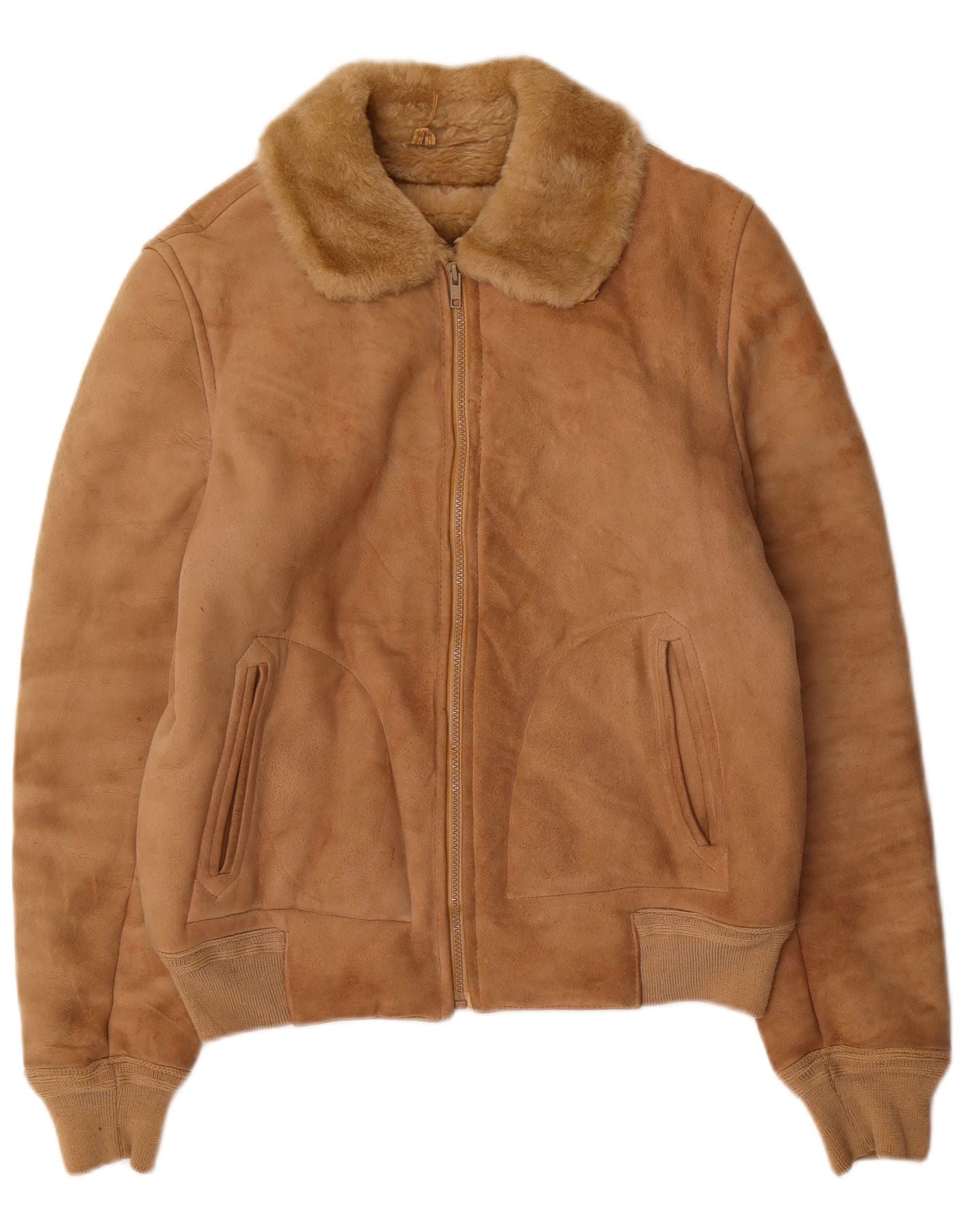 Женская короткая дубленка FIBOK UK 16, большая коричневая короткая дубленка