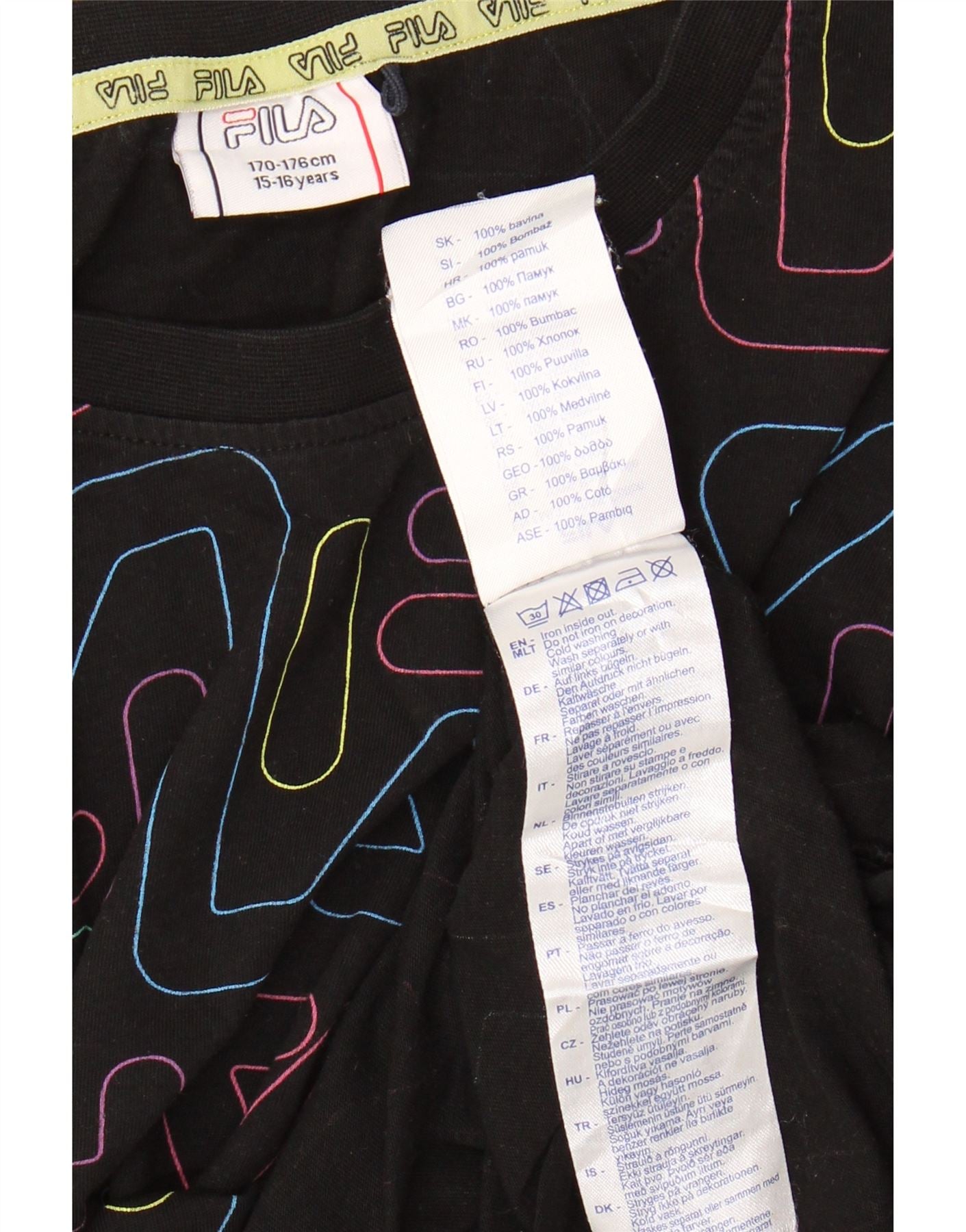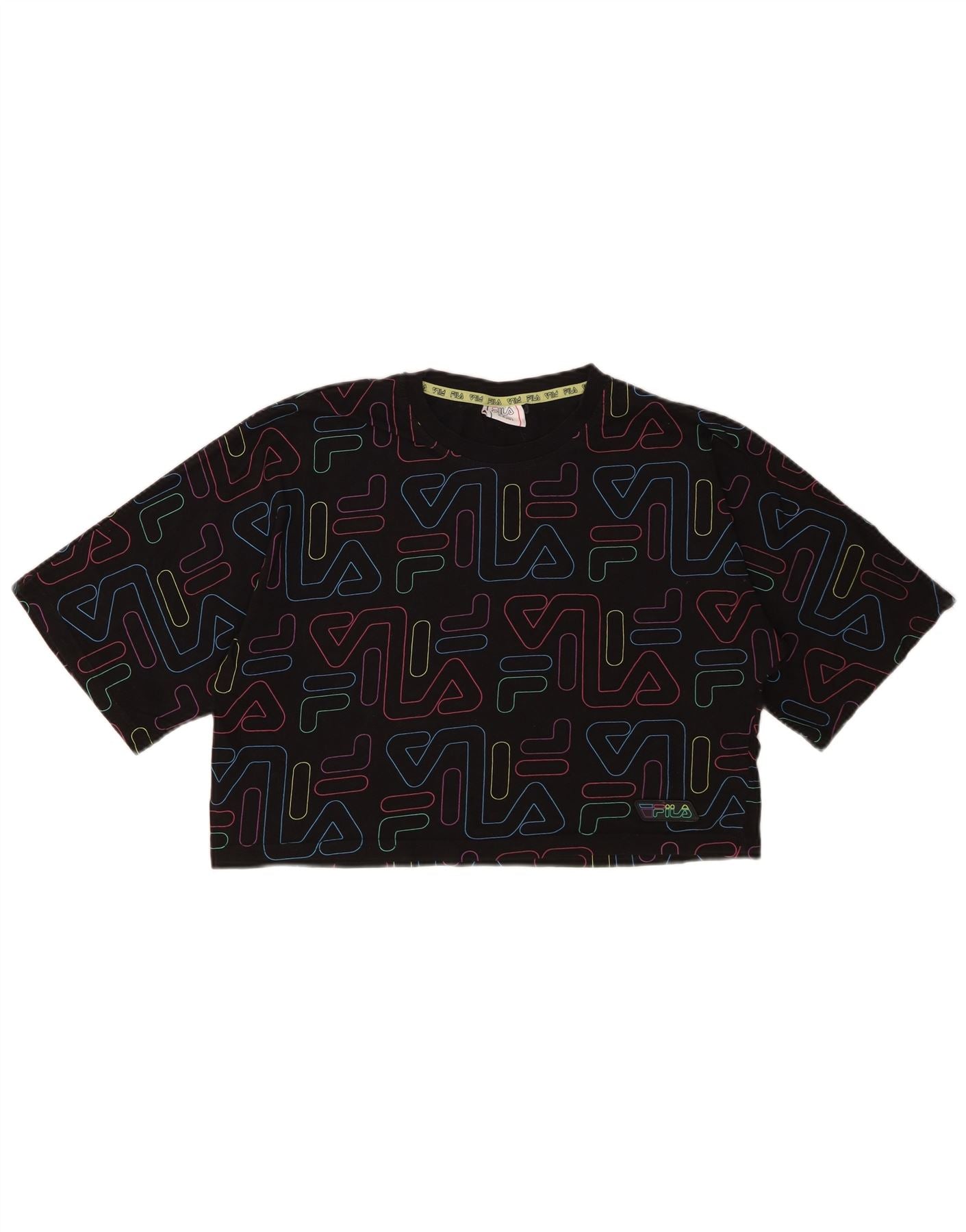 Укороченная футболка с рисунком FILA для девочек, 15–16 лет, черный хлопок