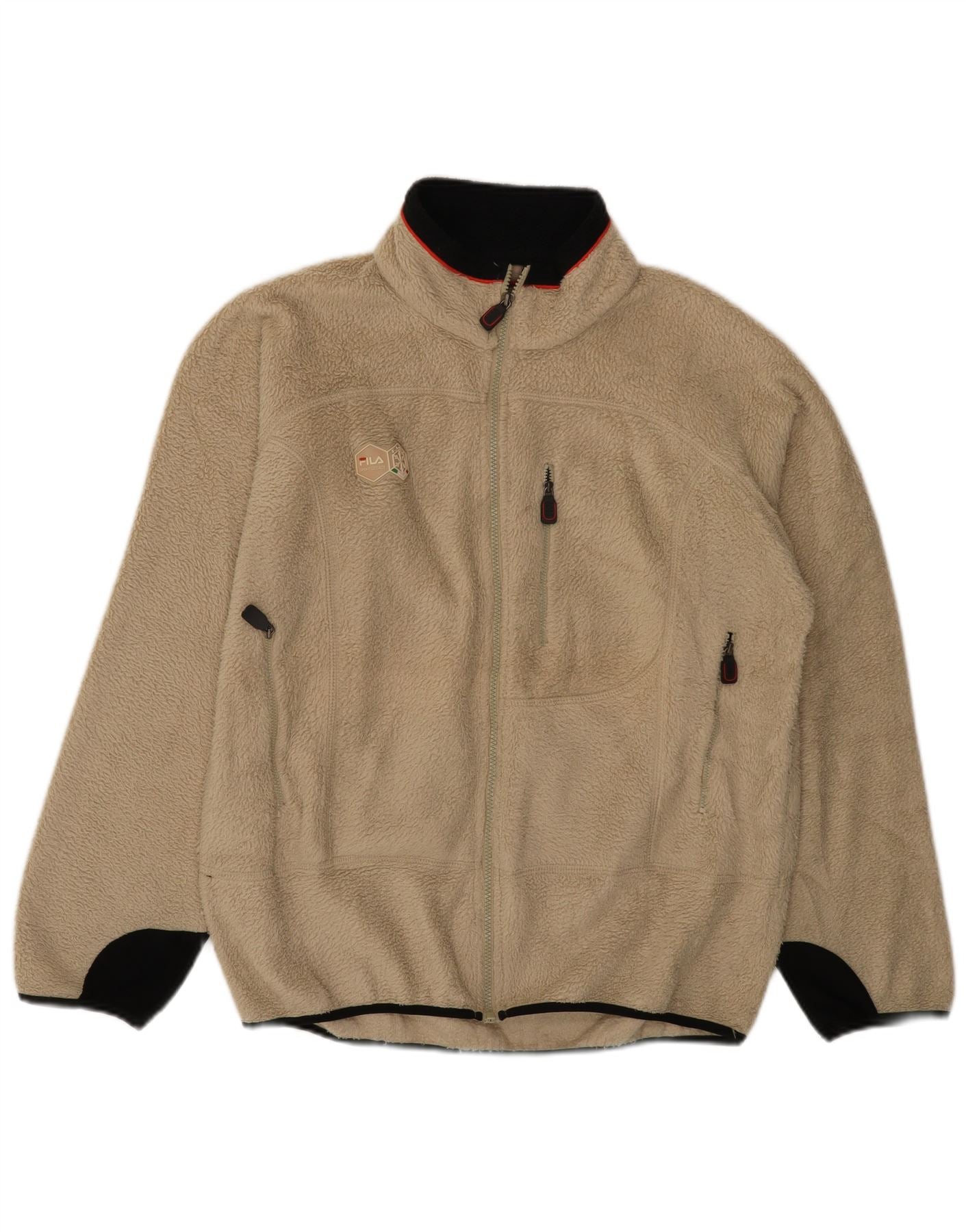 Мужская флисовая куртка Fila UK 40, большая бежевая, полиэстер с цветными блоками, спортивная