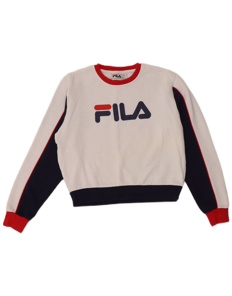 Женский укороченный свитшот оверсайз FILA UK 10, маленький белый с цветными блоками