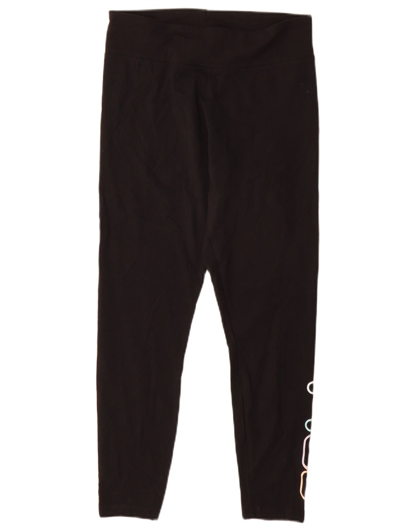 FILA Womens Graphic Leggings UK 12 Medium Black Cotton